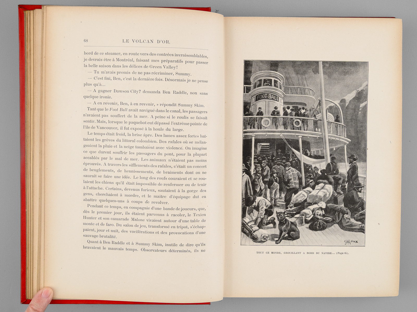 Illustrations de Georges Roux, Nombreuses Photographies, Douze grandes planches en chromotypographie, 1 vol. in-4 cartonnage éditeur pleine percaline rouge à l'éventail et à un éléphant, dos au phare, titre dans l'éventail, toutes tranches dorées, Collection Hetzel, Paris, s.d. [ circa 1907-1910 ], 2 ff., 492 pp.