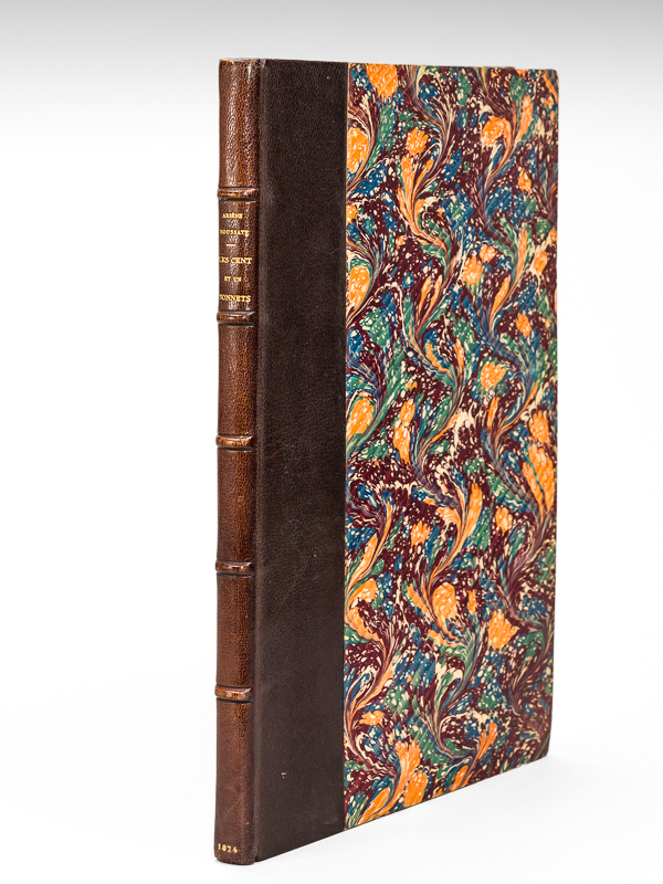 Tiré à 500 exemplaires numérotés, exemplaire numéroté 5, avec les 7 planches hors texte sur papier de chine, 1 vol. in-4 reliure demi-maroquin brun, dos à 5 nerfs, tête dorée, couvertures et dos conservés, reliure signée de Stroobants, Librairie à Estampes, Jules Maury et Cie, s.d. [ 1874 ], 2 ff., 51 ff. (Sonnet) et 3 ff. n. ch. avec portrait d'Arsène Houssaye en frontispice et 7 planches hors texte Commentaire : Exemplaire avec mes 8 planches tirées sur chine. Bon exemplaire très bien relié par Stroobants (rouss. sur les planches, ex-libris Robert et Roland Thibaut). Vicaire, IV, 201