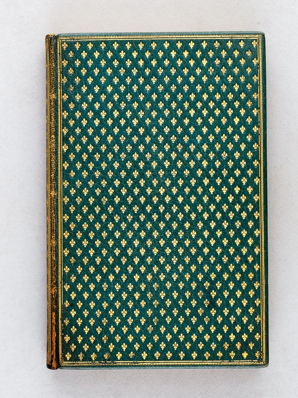 Un des 75 exemplaires sur papier du Japon de la Manufacture Impériale (n° 56), 1 vol. in-12 reliure de l'époque plein maroquin vert à semis de lys, coupes et chasses richement ornés, gardes de moire rose, Arthème Fayard, Paris, s.d. [ 1924 ], 221 pp.
