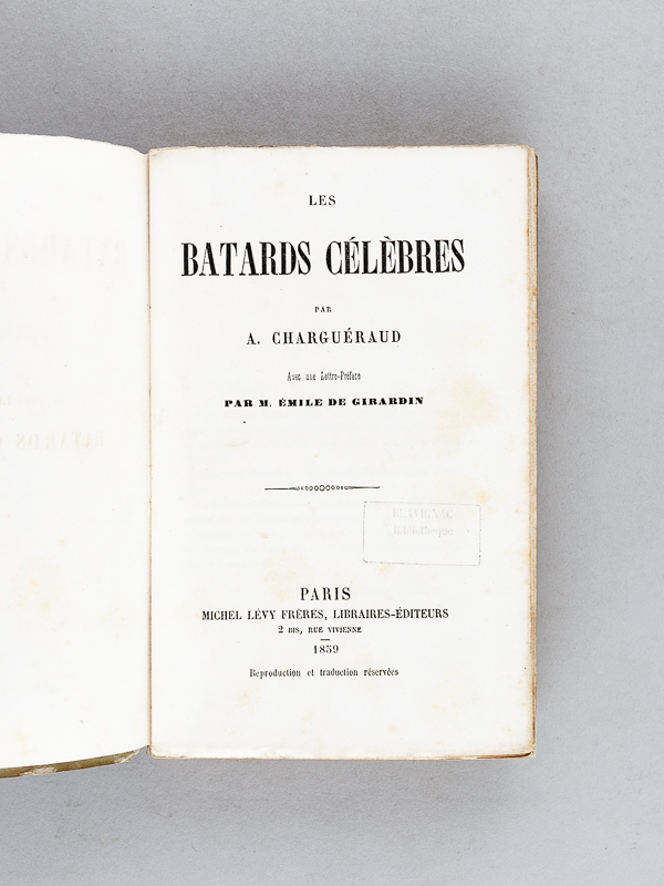 Avec une lettre-préface par M. Emile de Girardin, 1 vol. in-12 br., Michel Lévy Frères, Paris, 1859, XII-598 pp. Commentaire : Edition originale. Bon état (couv. lég. frottée) pour ce rare exemplaire de l'édition originale. L'auteur y évoque notamment le Chevalier de Saint-Georges, Championnet, Delille, Chamfort, Jean Burgoyne, D'Alembert, Mademoiselle de Lespinasse, Le Duc du Maine, Don Juan d'Autrche, Clément VII, Jean de Dunois, etc. etc.