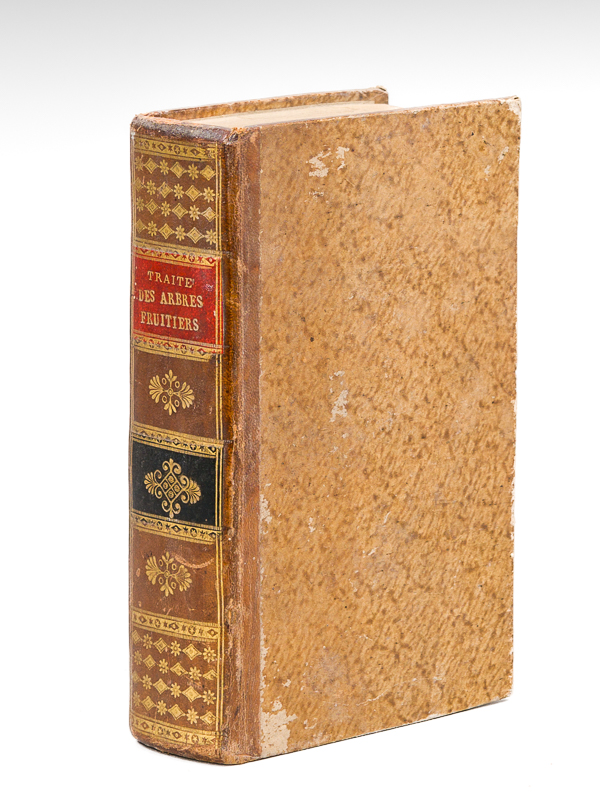 Par Toussaint-Yves Catros, Pépiniériste à Bordeaux, membre de la société des sciences de cette ville, et de la commission des travaux pour l'ensemencement des Dunes du Golfe de Gascogne, 1 vol. in-12 reliure de l'époque pleine basane fauve, dos lisse joliment orné, De l'Imprimerie de Moreau, rue Porte-Dijeaux, à Bordeaux, An 1810, 583 pp. et 18 ff. n. ch. Rappel du titre complet : Traité raisonné des Arbres Fruitiers. Et la synonymie des noms les plus connus, avec ceux des départemens méridionaux ; leur description et celle des fruits ; le temps plus ordinaire de leur maturité ; la forme qui convient à chaque genre, et le terrain qui lui est propre, ainsi que l'exposition ; le choix que l'on peut faire des espèces ; un traité sur les différentes manière de les greffer, ainsi que pour les vignes dont on fait connaître les espèces qui produisent les meilleurs raisins pour l'usage de la table, leurs cultures, appuyées de l'expérience de l'auteur, sur des observations de plus de trente années en divers lieux de la France