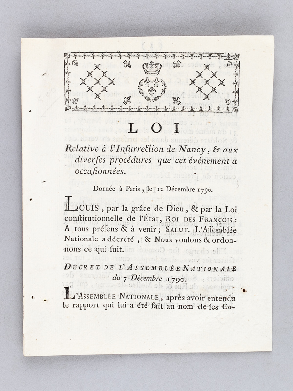 Loi relative à l'Insurrection de Nancy, & aux diverses procédures que cet événement a occasionnées données à Paris, le 12 décembre 1790photo n°2 : Loi relative à l'Insurrection de Nancy, & aux diverses procédures que cet événement a occasionnées données à Paris, le 12 décembre 1790photo n°3 : Loi relative à l'Insurrection de Nancy, & aux diverses procédures que cet événement a occasionnées données à Paris, le 12 décembre 1790photo n°4 : Loi relative à l'Insurrection de Nancy, & aux diverses procédures que cet événement a occasionnées données à Paris, le 12 décembre 1790photo n°5 : Loi relative à l'Insurrection de Nancy, & aux diverses procédures que cet événement a occasionnées données à Paris, le 12 décembre 1790photo n°6 : Loi relative à l'Insurrection de Nancy, & aux diverses procédures que cet événement a occasionnées données à Paris, le 12 décembre 1790