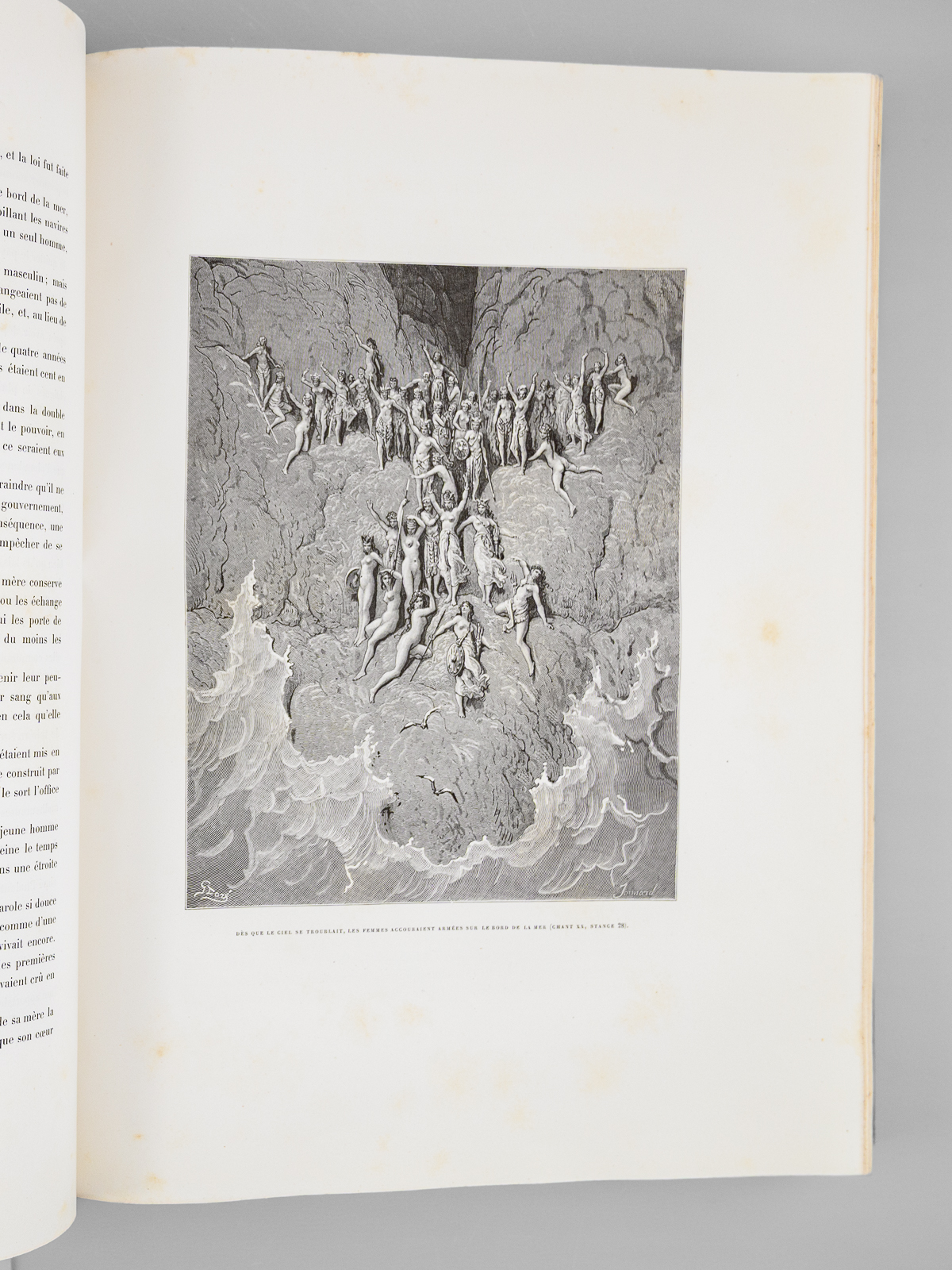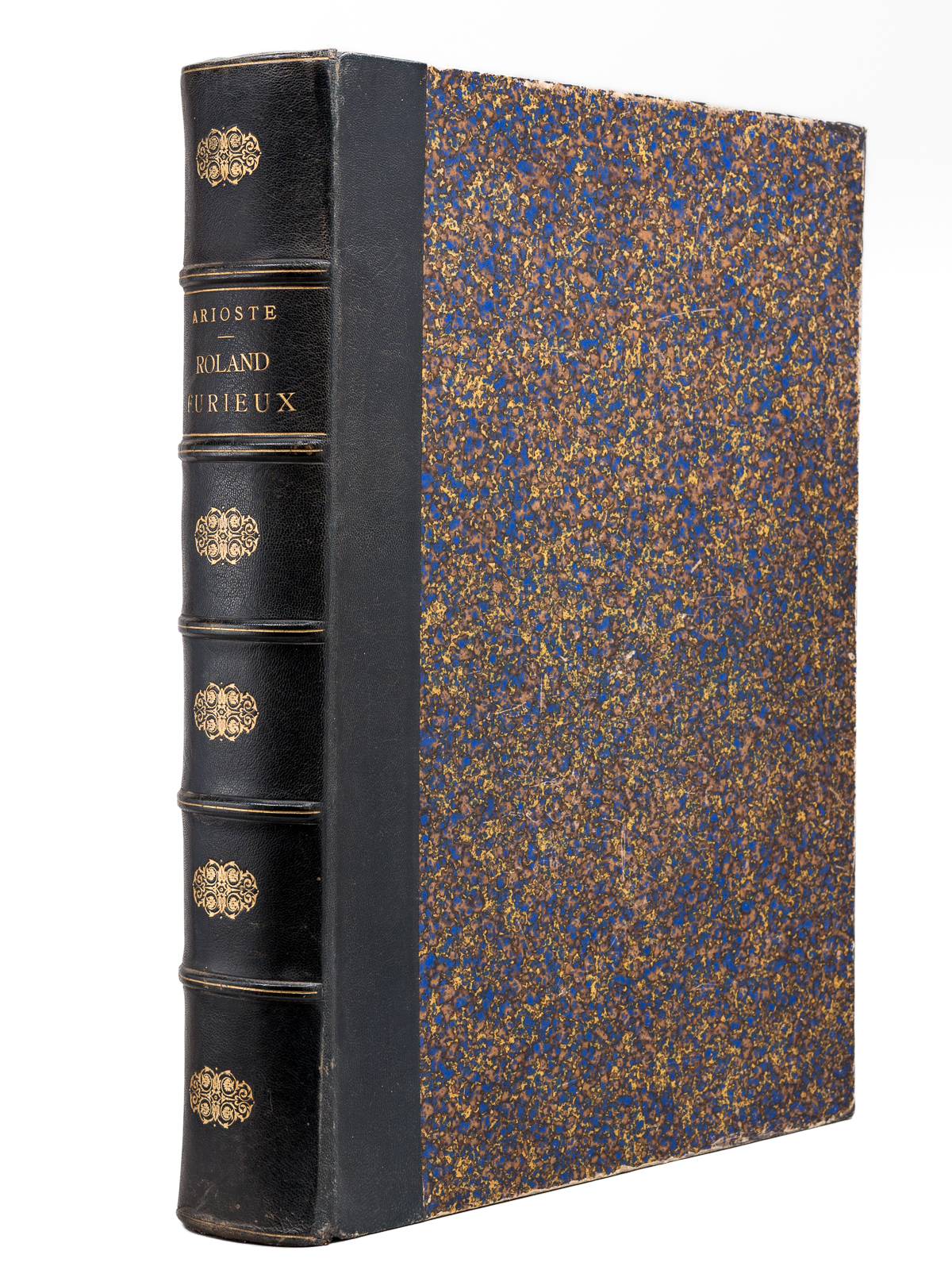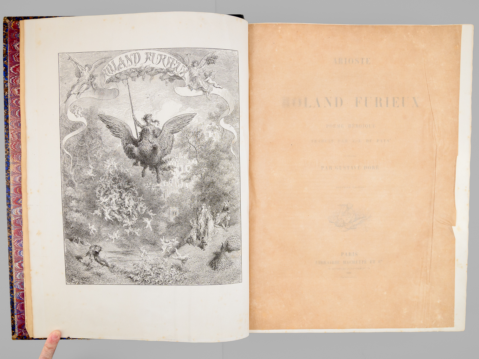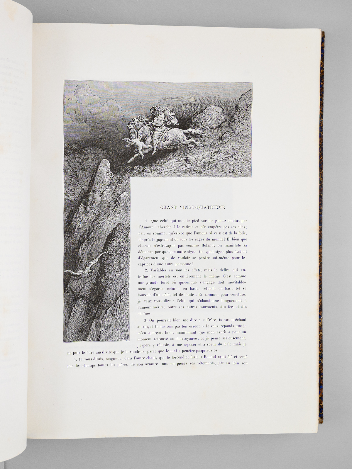 Traduit par A.-J. du Pays et illustré par Gustave Doré, nouvelle édition, 1 vol. fort in-folio reliure d'époque demi-chagrin maroquiné bleu, dos à 5 nerfs orné (fleurons), Librairie Hachette et Cie, Paris, 1888, VIII-658 pp. Commentaire : Bon état (qq. petits frott. et qq. rouss., bon exemplaire par ailleurs). Leblanc,
