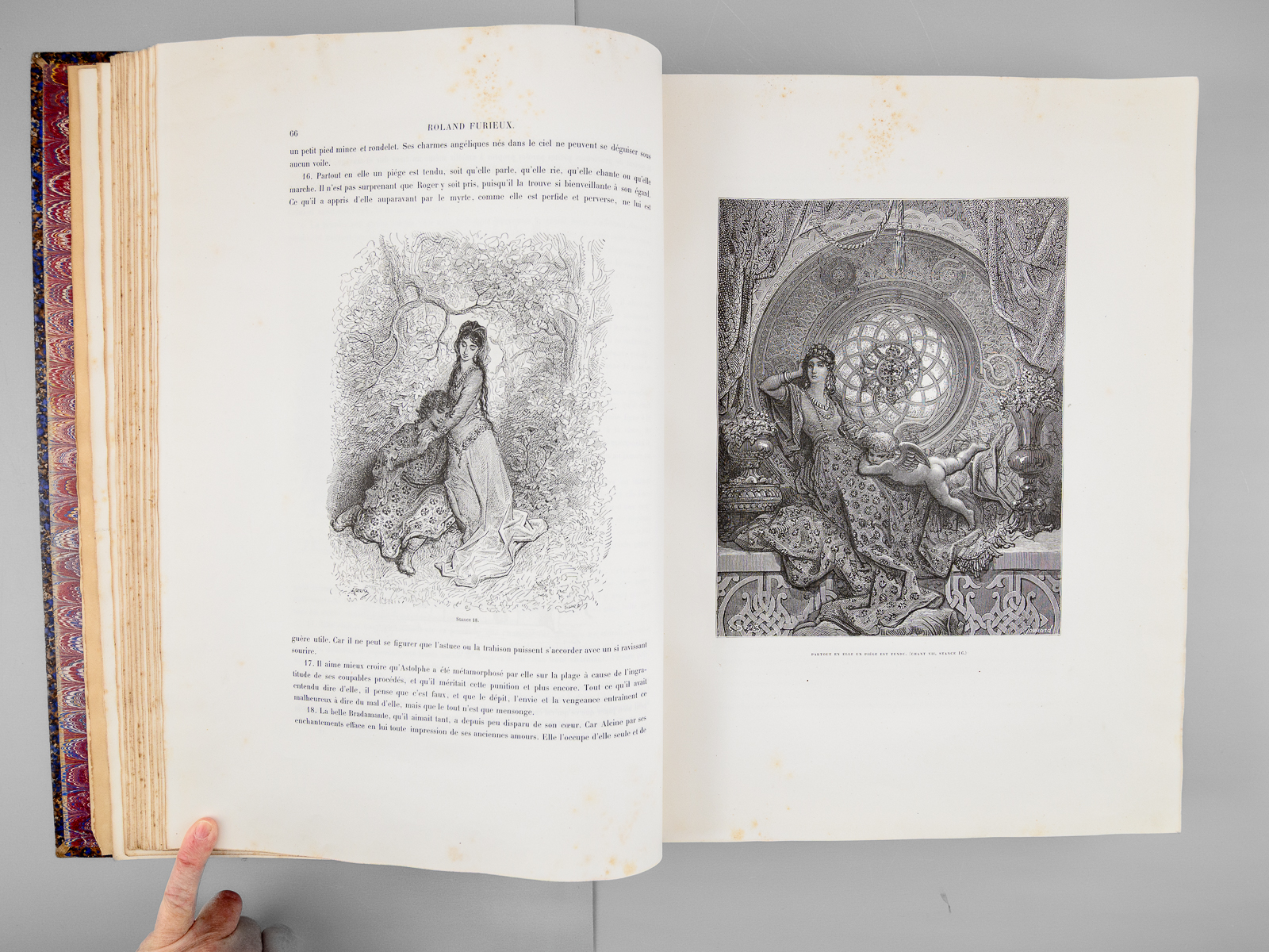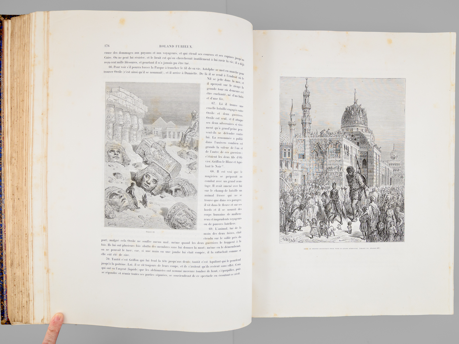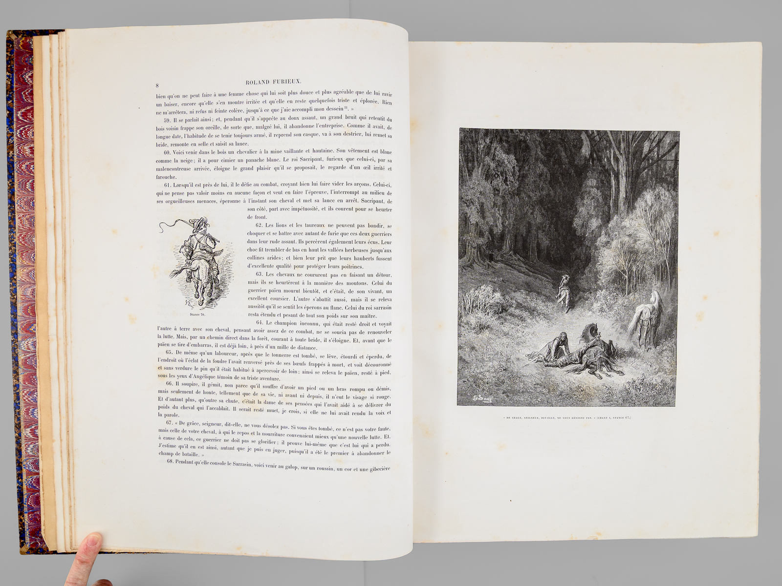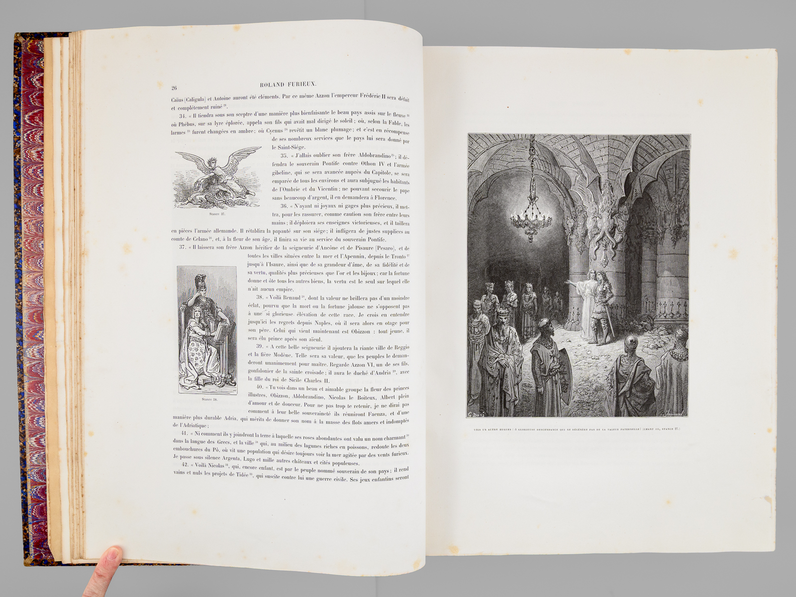 Traduit par A.-J. du Pays et illustré par Gustave Doré, nouvelle édition, 1 vol. fort in-folio reliure d'époque demi-chagrin maroquiné bleu, dos à 5 nerfs orné (fleurons), Librairie Hachette et Cie, Paris, 1888, VIII-658 pp. Commentaire : Bon état (qq. petits frott. et qq. rouss., bon exemplaire par ailleurs). Leblanc,