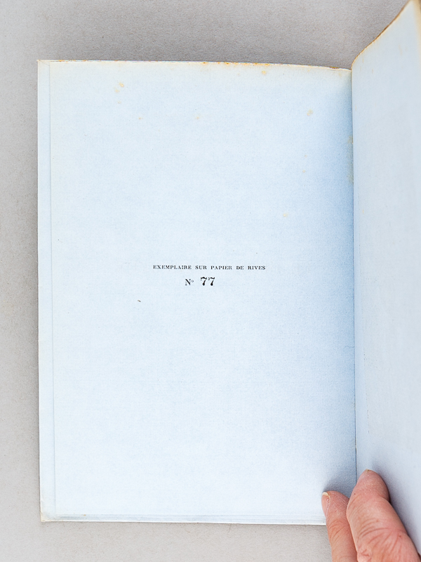 Un des 30 exemplaires sur vélin bleu numérotés de 51 à 80 (n° 77), 1 vol. in-8 br., coll. Les Maîtres du Livres, Georges Crès et Cie, Paris, 1920, 246 pp. et 3 ff. Commentaire : Bon exemplaire sur papier bleu (qq. très lég. rouss., bel exemplaire par ailleurs)