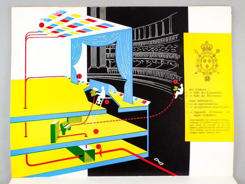 Commentaire : Avec un billet d'envoi de Jean Boski, DG de la Compagnie Générale de Travaux d'Eclairage et de Force. Etat très satisfaisant (rouss. sur couv., bel état intérieur) pour cette instructive brochure publicitaire peu courante, éditée à l'occasion de la réfection de l'Opéra Louis XV du château de Versailles.