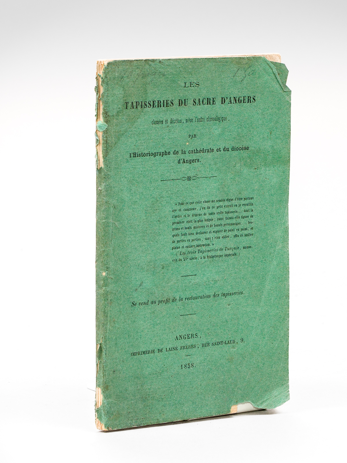 Les Tapisseries du Sacre d'Angers, classées et décrites, selon l'ordre chronologique, par l'Historiographe de la cathédrale et du diocèse d'Angers [ Edition originale ] - Auteur: Historiographe de la cathédrale et du diocèse d'Angers ; [ BARBIER DE MONTAULT, Xavier ] - Année d'édition: 1858