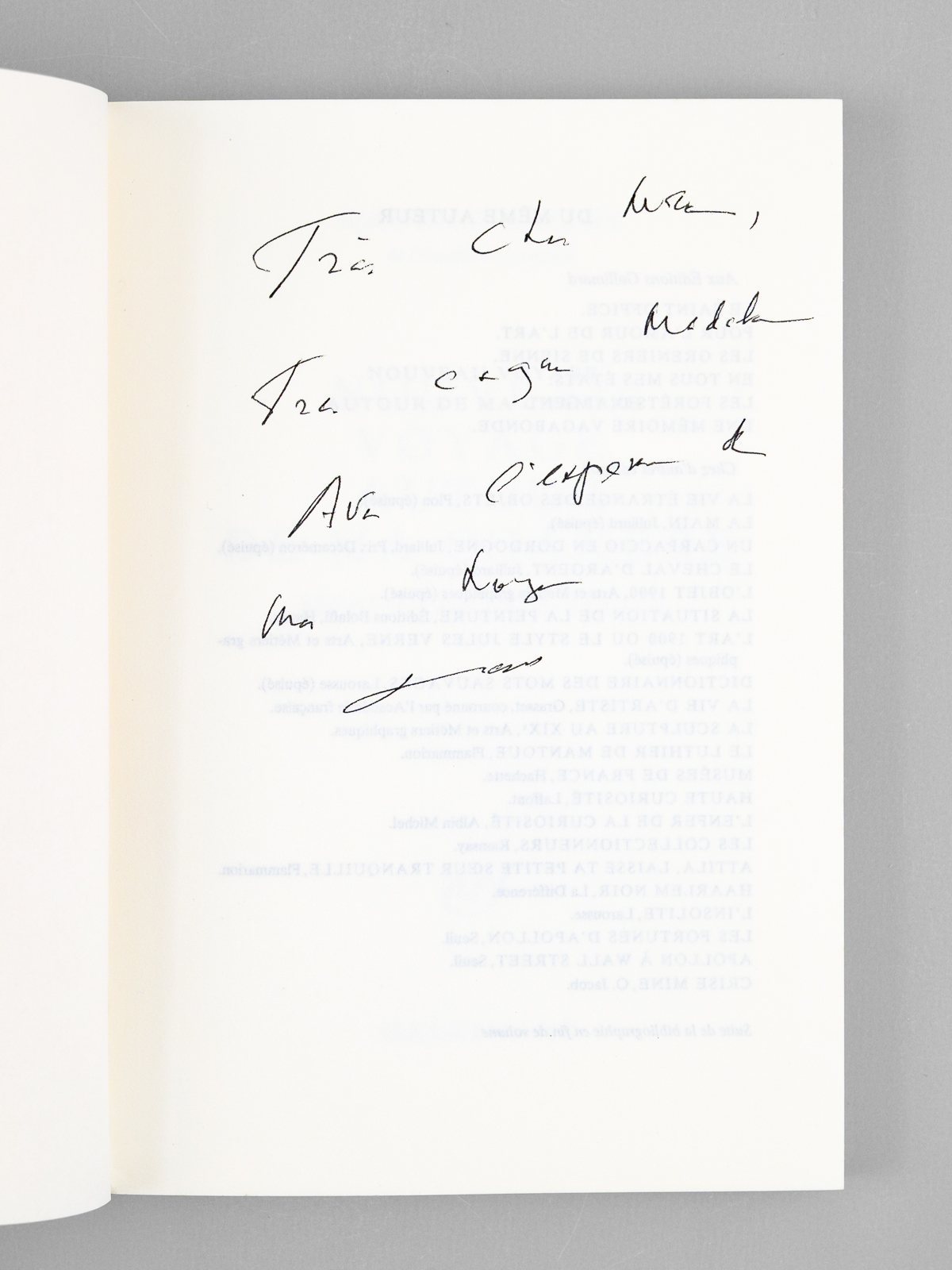 1 vol. in-8 br., Robert Laffont, Paris, 1975, 426 pp. Commentaire : Superbe envoi de Maurice Rheims : 'Voilà chère Madeleine, cher Maurice, le premier exemplaire que je signe, avec toute l'expression de ma très vive affection. Le premier, car c'est à toi Maurice que je dois que ce livre, bon ou mauvais ait pris ce ton. A vous deux, votre plus fidèle ami'. Etat très satisfaisant (pliure en couv. , qq. rouss. en tête, bon exemplaire par ailleurs) pour cet exemplaire de superbe provenance : de la bibliothèque du grand écrivain Maurice Druon, Secrétaire Perpétuel de l'Académie Française de 1985 à 1999, qui a, comme à son habitude, replié l'angle des feuillets dont les passages avaient plus particulièrement retenu son attention.,