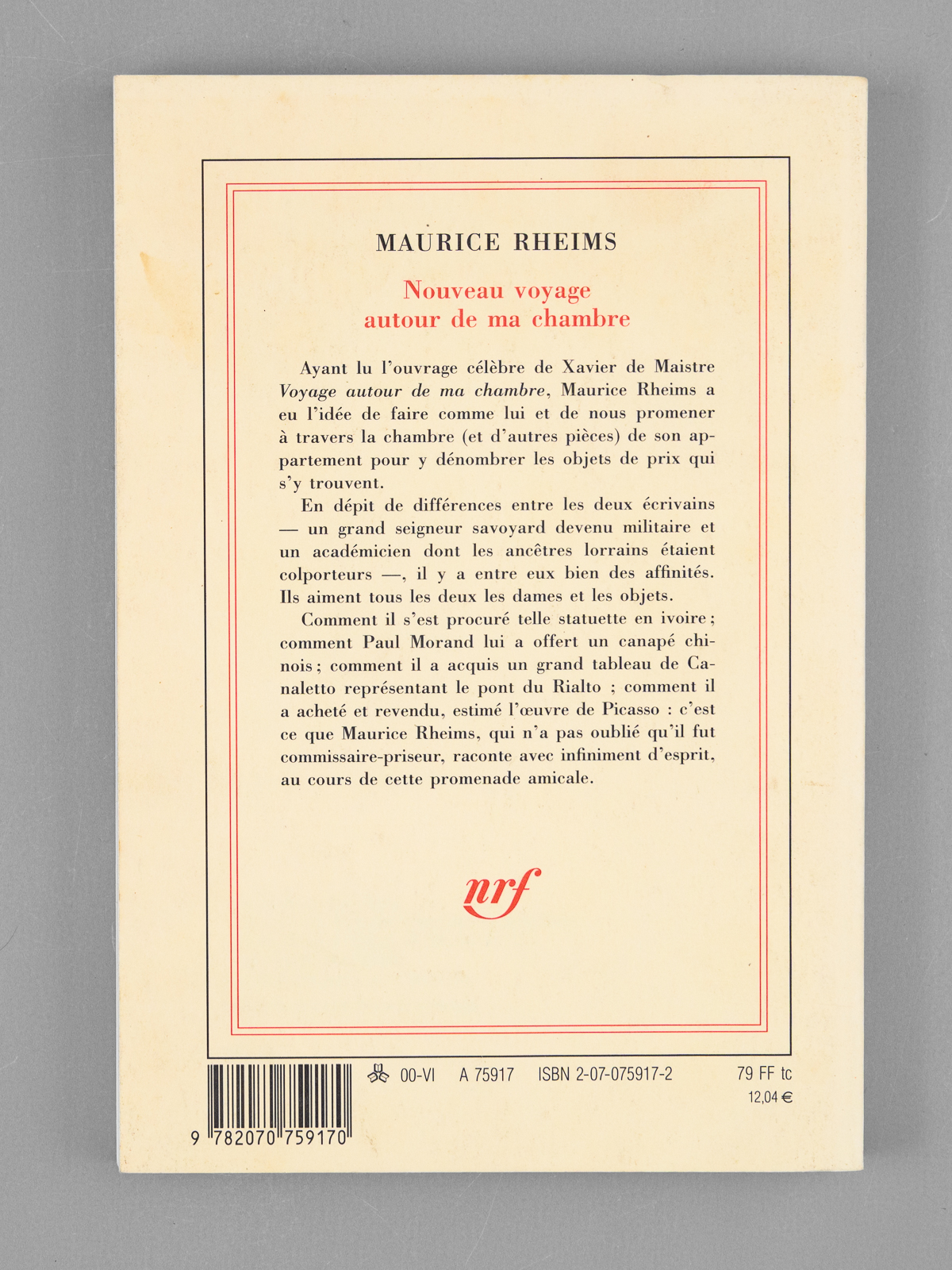Nouveau Voyage au tour de ma Chambre. Essai et autres récits [ Livre dédicacé par l'auteur à Maurice Druon ] - Auteur: RHEIMS, Maurice - Année d'édition: 1975