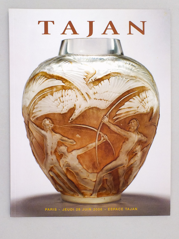 6 vol. in-4 br., couv. ill. couleurs, nombr. photos couleurs, Tajan, Paris, 2006, 104 pp. et 163 lots, 90 pp. et 459 lots, 143 pp. et 289 lots, 96 pp. et 442 lots, 113 pp. et 447 lots, 226 pp. et 328 lots,. Avec leurs estimations. Rappel de la liste des catalogues : 28 mars 2006 ; 13 avril 2006 ; 7 juin 2006 ; 29 juin 2006 ; 9 novembre 2006 ; 29 novembre 2006 Commentaire : Très bon état pour ces catalogues de ventes aux enchères d'art décoratif XXe. Prix pour l'ensemble