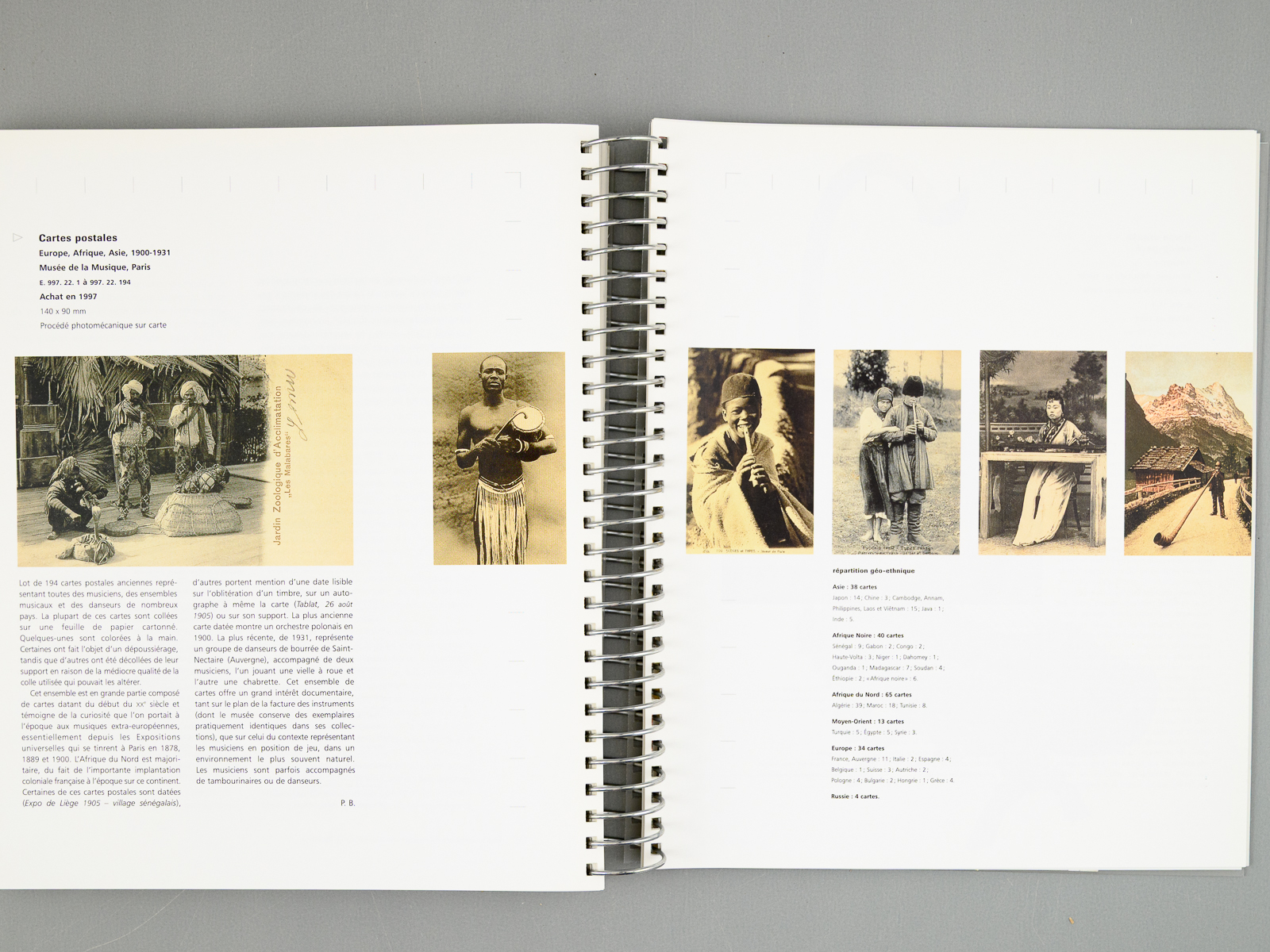1 vol. gr. in-8 carré reliure spirale, photos couleurs, Cité de la Musique, Paris, 2001, 288 pp. On joint le proespectus ainsi que le CD de l'exposition ('Ecoutez les instruments du Musée'). Commentaire : Très bon état.