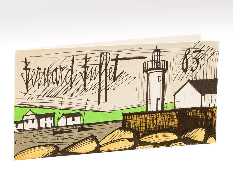 Carton d'invitation illustré : 'Je serais heureux de vous accueillir au Vernissage de mon exposition 'Paysages' le jeudi 3 février 1983 à partir de 16 heures chez Maurice Garnier 6 avenue Matignon Paris' - Auteur: BUFFET, Bernard - Année d'édition: 1983