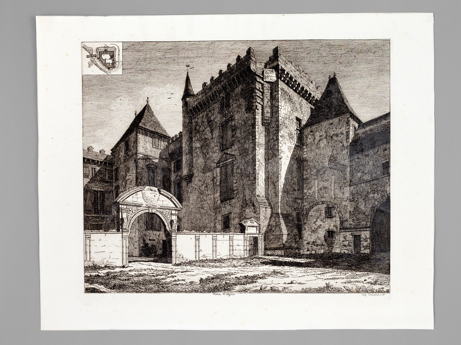 Commentaire : Belle et grande gravure à l'eau-forte du Château de Vayres (en Gironde, sur les berges de la Dordogne), par Léo Drouyn (marges un peu réduites, bel état par ailleurs).