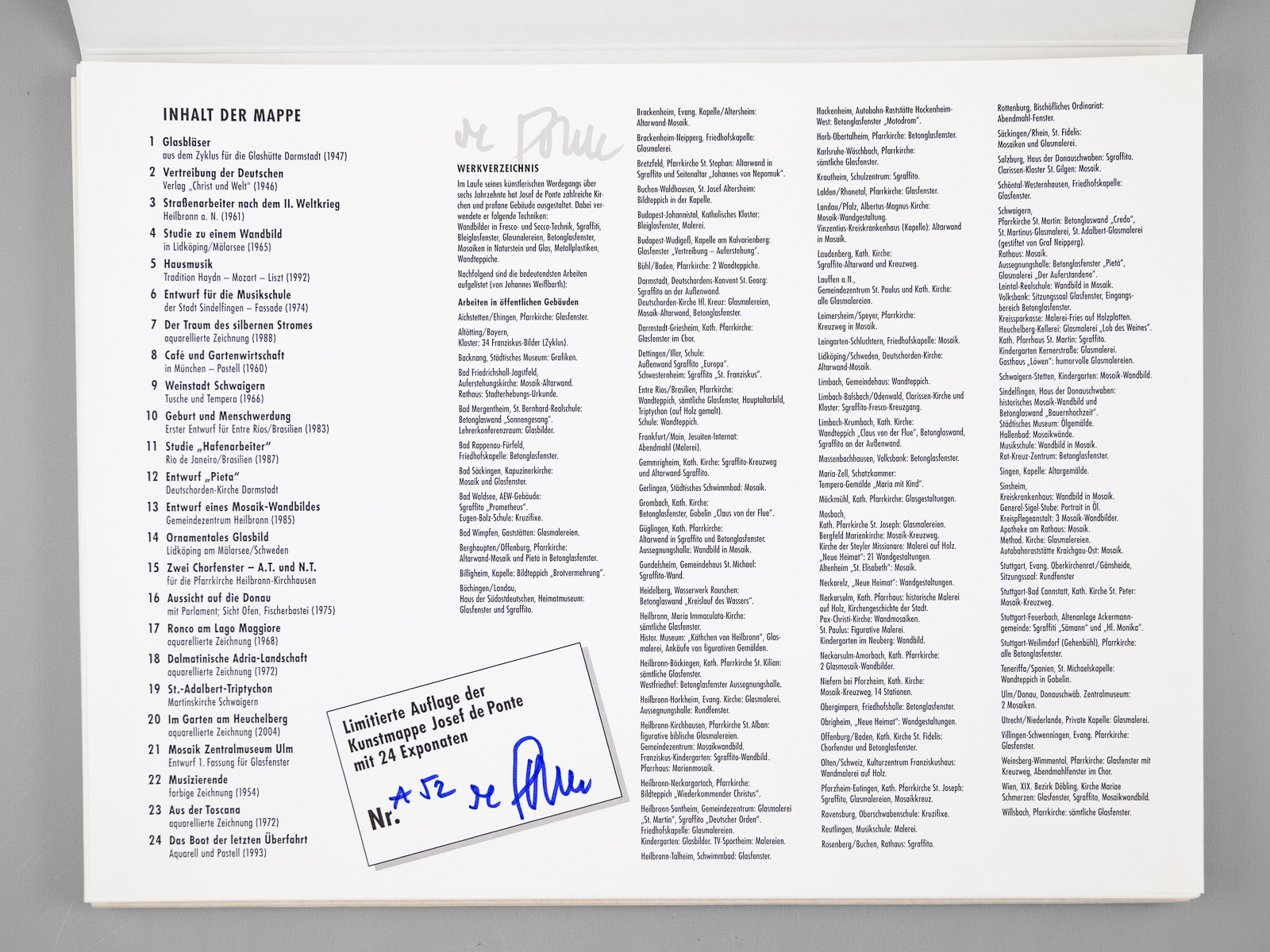 Limitierte, handsignierte, bisher in dieser Form unveröffentlichte Exponate von Josef de Ponte aus den Jahren 1946-2006photo n°2 : Limitierte, handsignierte, bisher in dieser Form unveröffentlichte Exponate von Josef de Ponte aus den Jahren 1946-2006photo n°3 : Limitierte, handsignierte, bisher in dieser Form unveröffentlichte Exponate von Josef de Ponte aus den Jahren 1946-2006photo n°4 : Limitierte, handsignierte, bisher in dieser Form unveröffentlichte Exponate von Josef de Ponte aus den Jahren 1946-2006photo n°5 : Limitierte, handsignierte, bisher in dieser Form unveröffentlichte Exponate von Josef de Ponte aus den Jahren 1946-2006photo n°6 : Limitierte, handsignierte, bisher in dieser Form unveröffentlichte Exponate von Josef de Ponte aus den Jahren 1946-2006photo n°7 : Limitierte, handsignierte, bisher in dieser Form unveröffentlichte Exponate von Josef de Ponte aus den Jahren 1946-2006photo n°8 : Limitierte, handsignierte, bisher in dieser Form unveröffentlichte Exponate von Josef de Ponte aus den Jahren 1946-2006photo n°9 : Limitierte, handsignierte, bisher in dieser Form unveröffentlichte Exponate von Josef de Ponte aus den Jahren 1946-2006photo n°10 : Limitierte, handsignierte, bisher in dieser Form unveröffentlichte Exponate von Josef de Ponte aus den Jahren 1946-2006