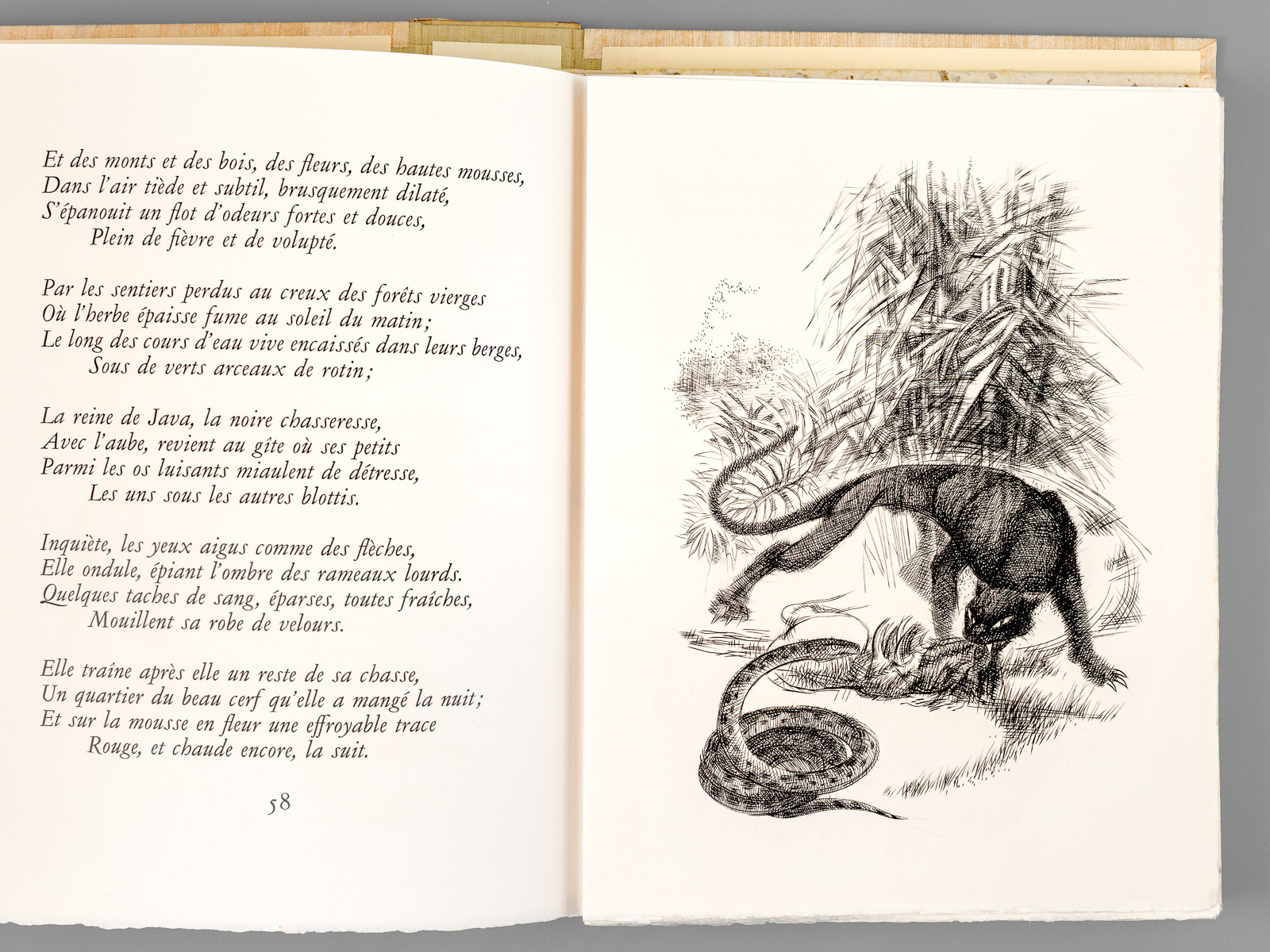 Un des 77 exemplaires sur vélin à la Cuve des Papeteries d'Arches (n° 8), 1 vol. in-4 en feuilles sous double emboîtage, chemise et étui sous papier imitation bois clair, couv. papier Madagascar beige, dos en bois, Aux dépens des soixante-dix-sept Bibliophiles, s.l., s.d. [ circa 1971-1980 ], 121 pp. et 6 ff. Commentaire : Etat très satisfaisant (rouss. et piqûres d'insectes au dos de la chemise rigide, bon état par ailleurs)