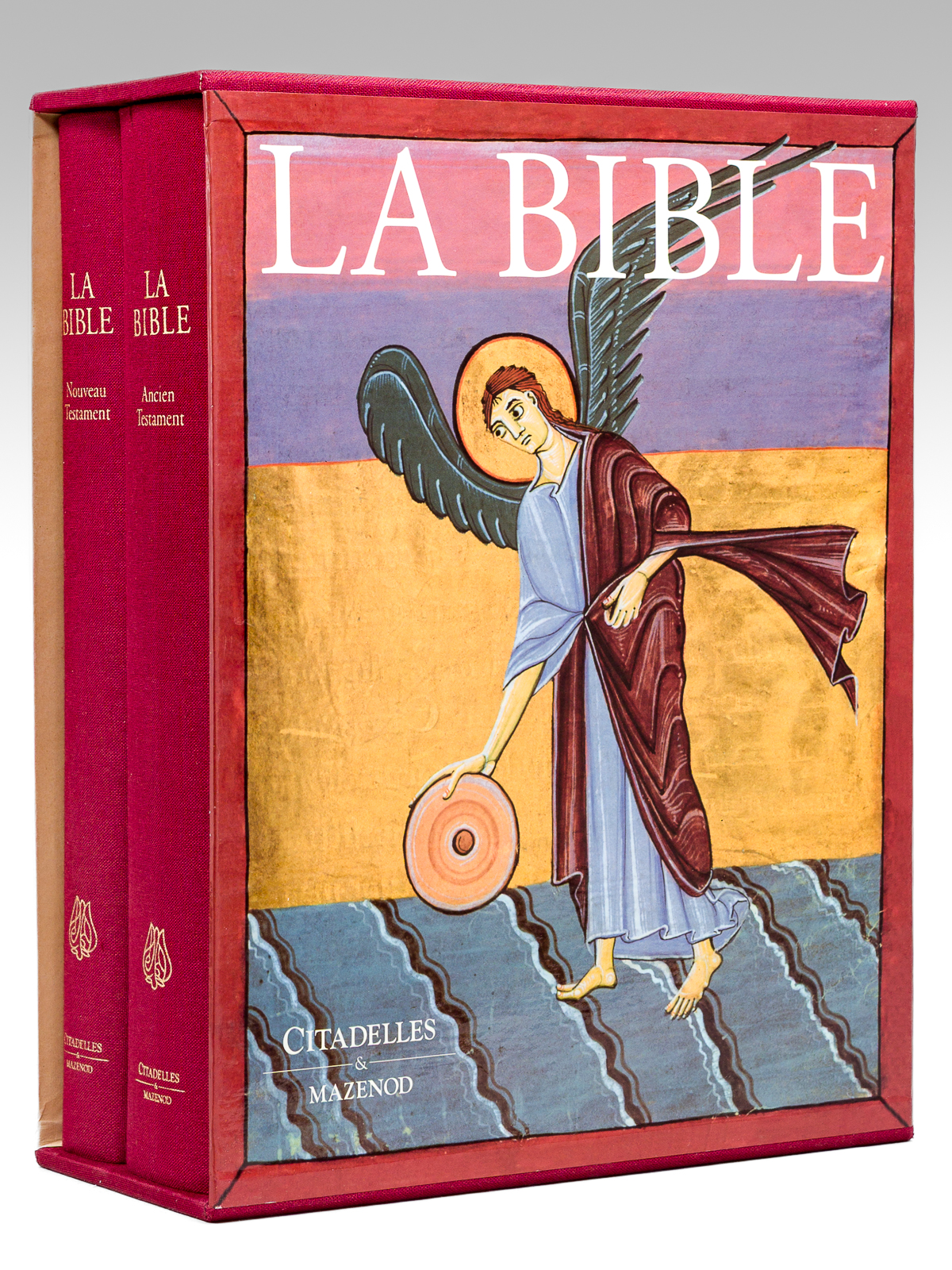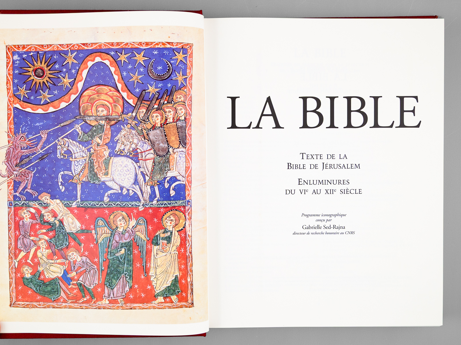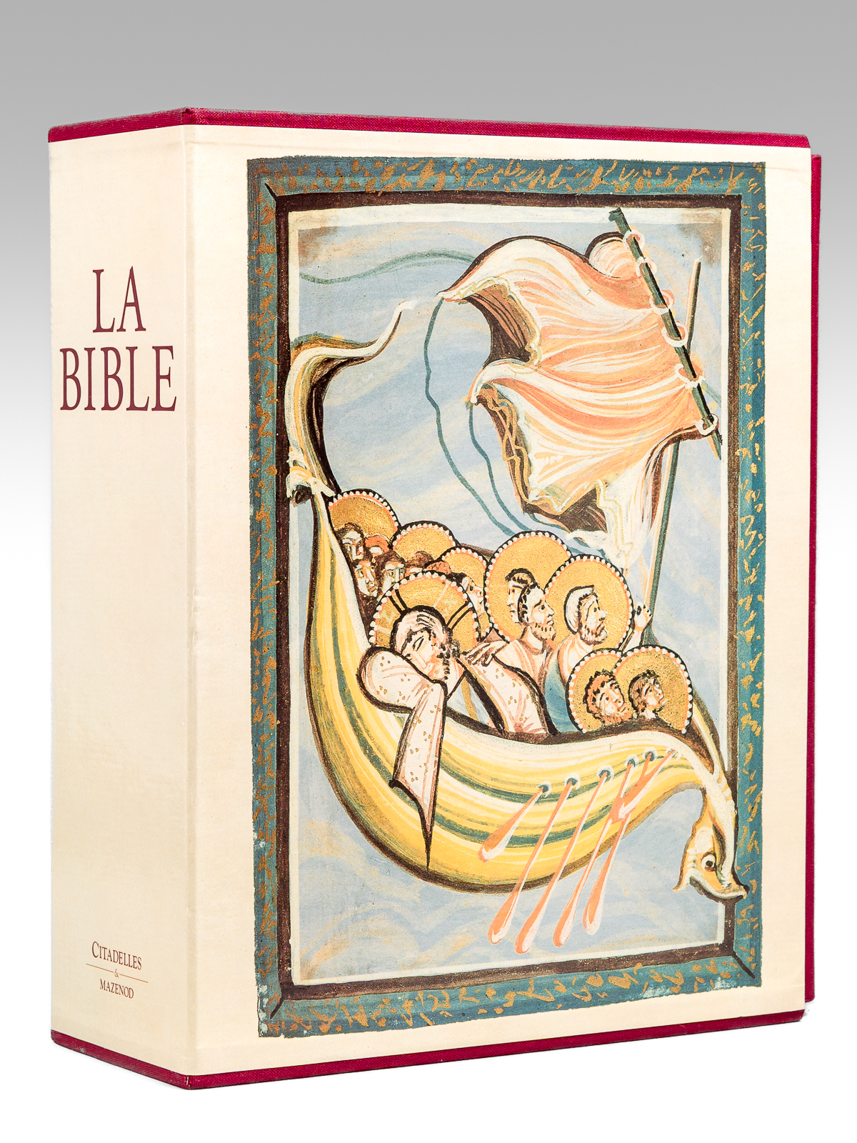 Commentaire : Le texte est celui de l'Ecole biblique de Jérusalem, les illustrations de cette magnifique édition réunissent les plus belles enluminures inspirées des Ecritures, du VIe au XIIe siècle. Bon état (qq. très petits frott. en dos, très bon état par ailleurs)