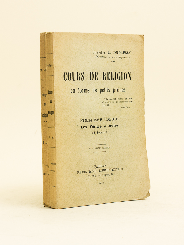 Cours de Religion en forme de petits prônes (2 Tomes - Complet) Première Série : Les Vérités à Croire 52 ; Deuxième Série : Devoirs à Pratiquer - Auteur: DUPLESSY, E. [ DUPLESSY, Chanoine Eugène (1860-1939) ] - Année d'édition: 1932