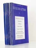 10 vol. in-8 br., couv. bleues, L'école des lettres, Paris, 1992 et 1993, env. 700 pp. au total. Au sommaire notamment : H.-S. Programme ; n° 1 ; n° 2 La princesse de Clèves ; n° 3 Approches de la poésie : n° 4 ; n° 5 Les Amours jaunes de Tristan...