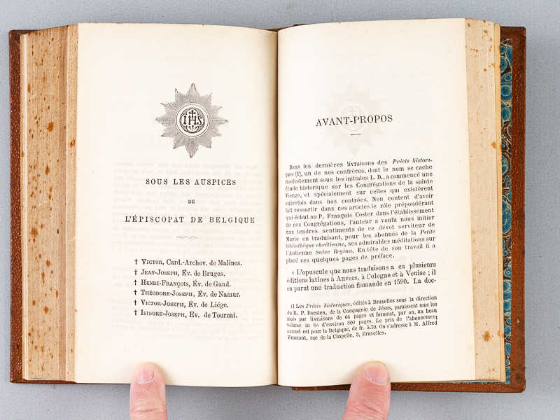 Commentaire : Etat très satisfaisant (anciens cachets d'institution religieuse, étiquette de cote en garde, rouss., rel. lég. frottée)
