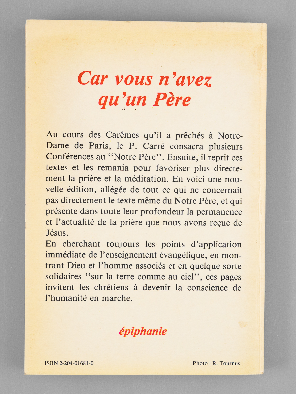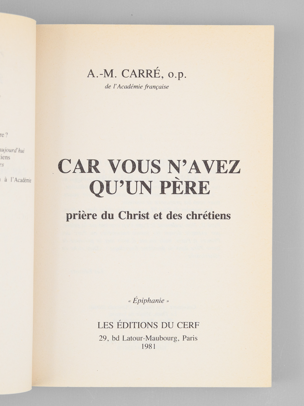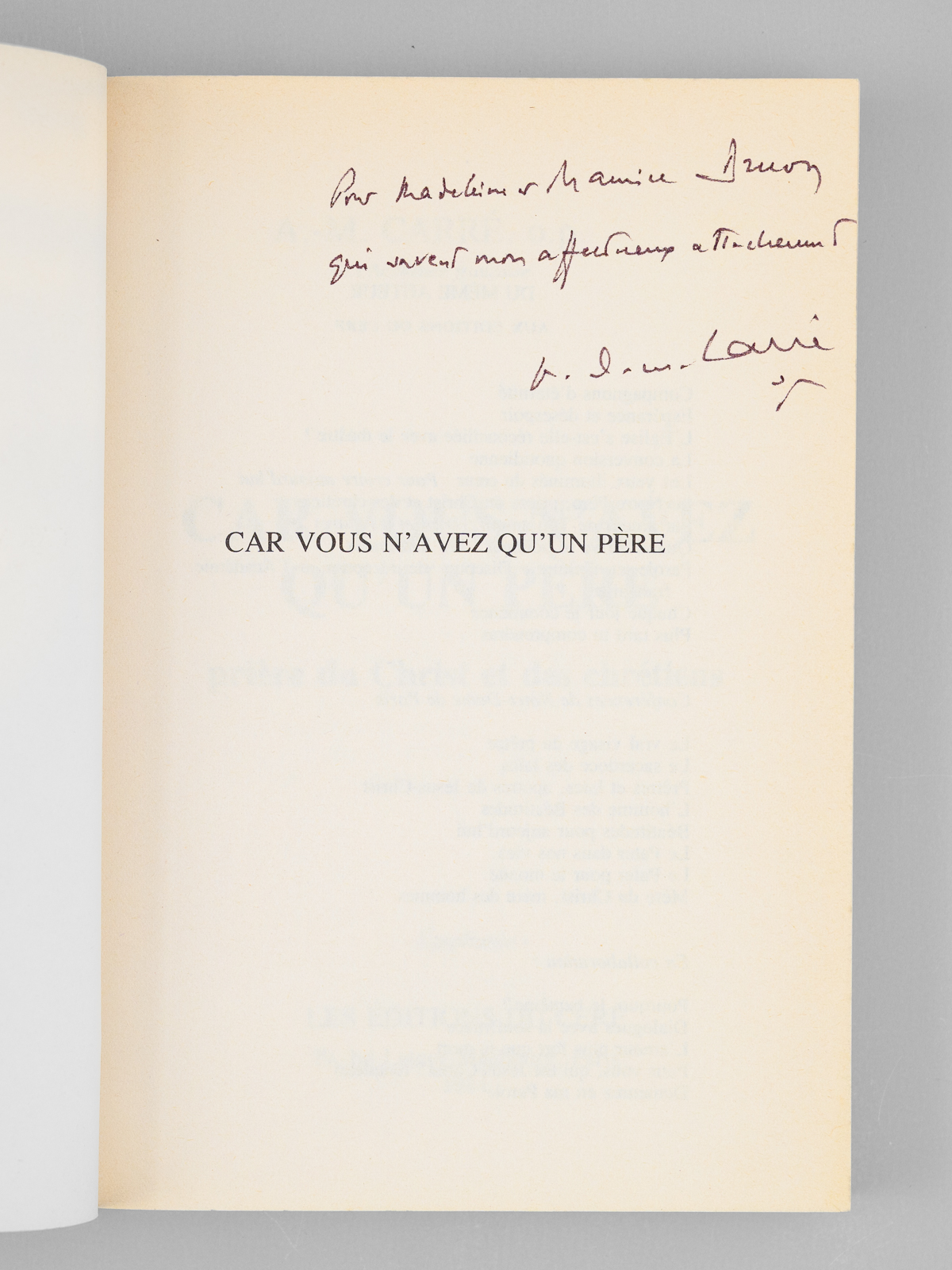 Car vous n'avez qu'un père [ Livre signé par l'auteur - Envoi à Maurice Druon ] - Auteur: Carré, A.-M. [ Carré, Père Ambroise-Marie (1908-2004) ] - Année d'édition: 1981