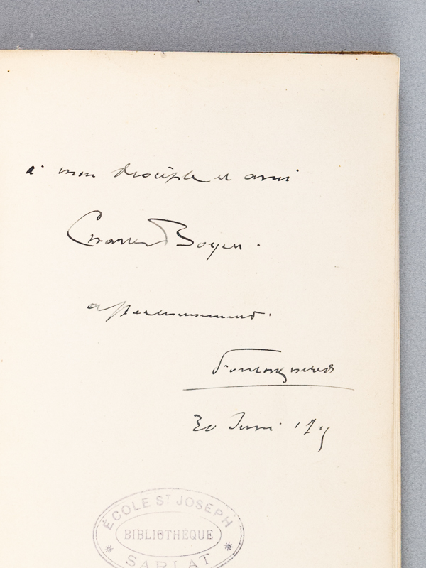 1 vol. in-12 br., G. Delmas, Bordeaux, s.d., 106 pp. Commentaire : Envoi de l'auteur. Etat très satisfaisant (anciens cachets d'institution religieuse, étiquette de cote en garde et couv.).