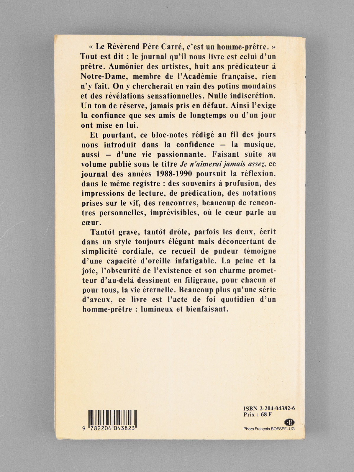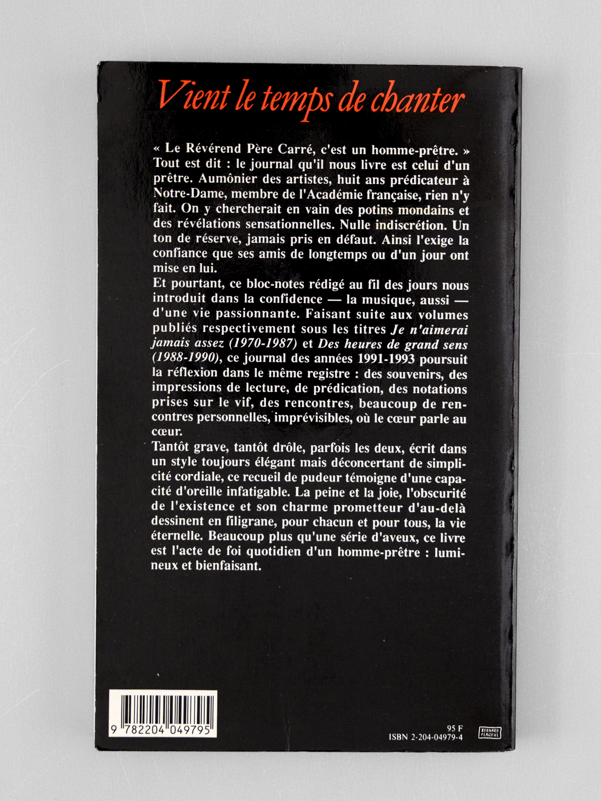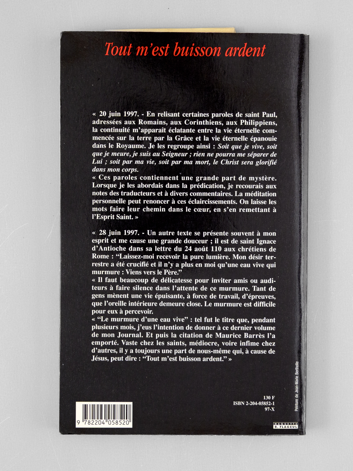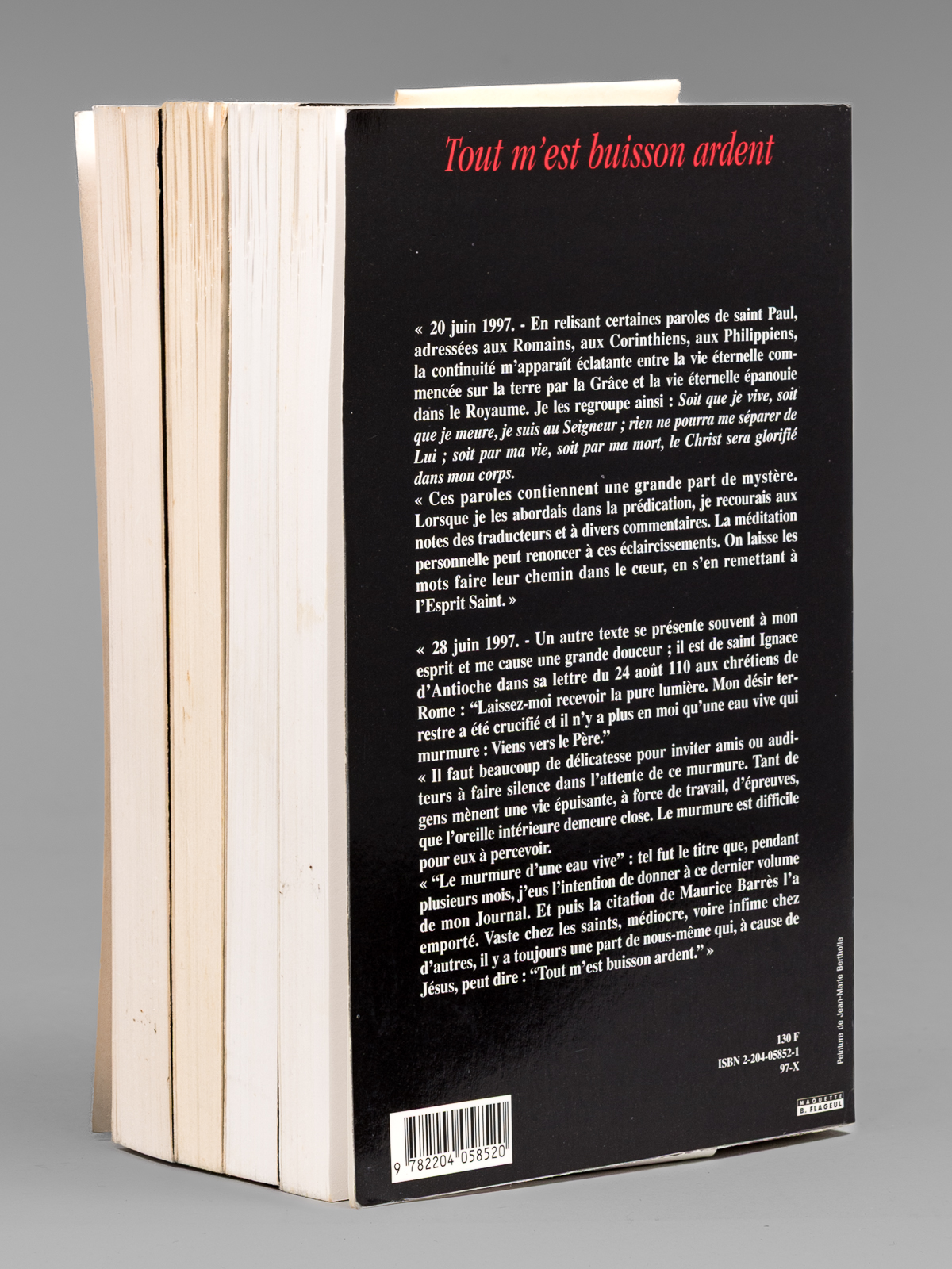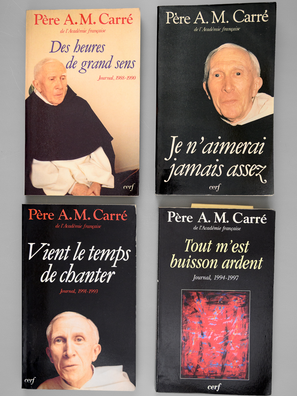 Je n'aimerai jamais assez, Journal 1970-1987 ; Des heures de grand sens, journal 1988-1990 ; Vient le temps de chanter, journal 1991-1993 ; Tout m'est buisson ardent, Journal 1994-1997 [ Lot de 4 livres signés par l'auteur - Envois à Maurice - Auteur: Carré, A.-M. [ Carré, Père Ambroise-Marie (1908-2004) ] - Année d'édition: 1997 |