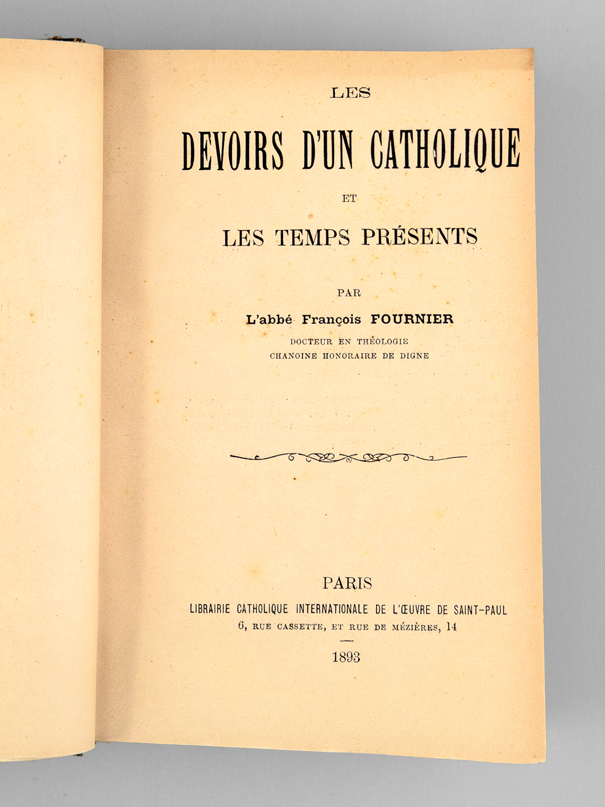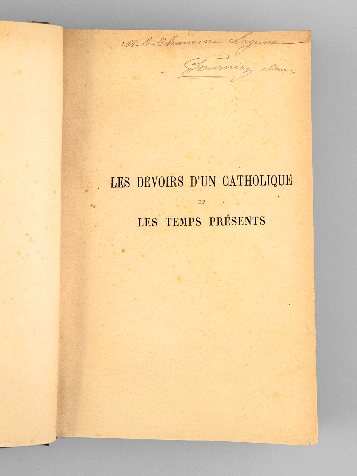 Les Devoirs d'un Catholique et les Temps présents [ Edition originale - Livre dédicacé par l'auteur ] [ Suivi de : ] L'Evangile raconté à mes Paroissiens par l'Abbé Raynaud, Curé de N.D. du Port - Auteur: FOURNIER, Abbé François - Année d'édition: 1893