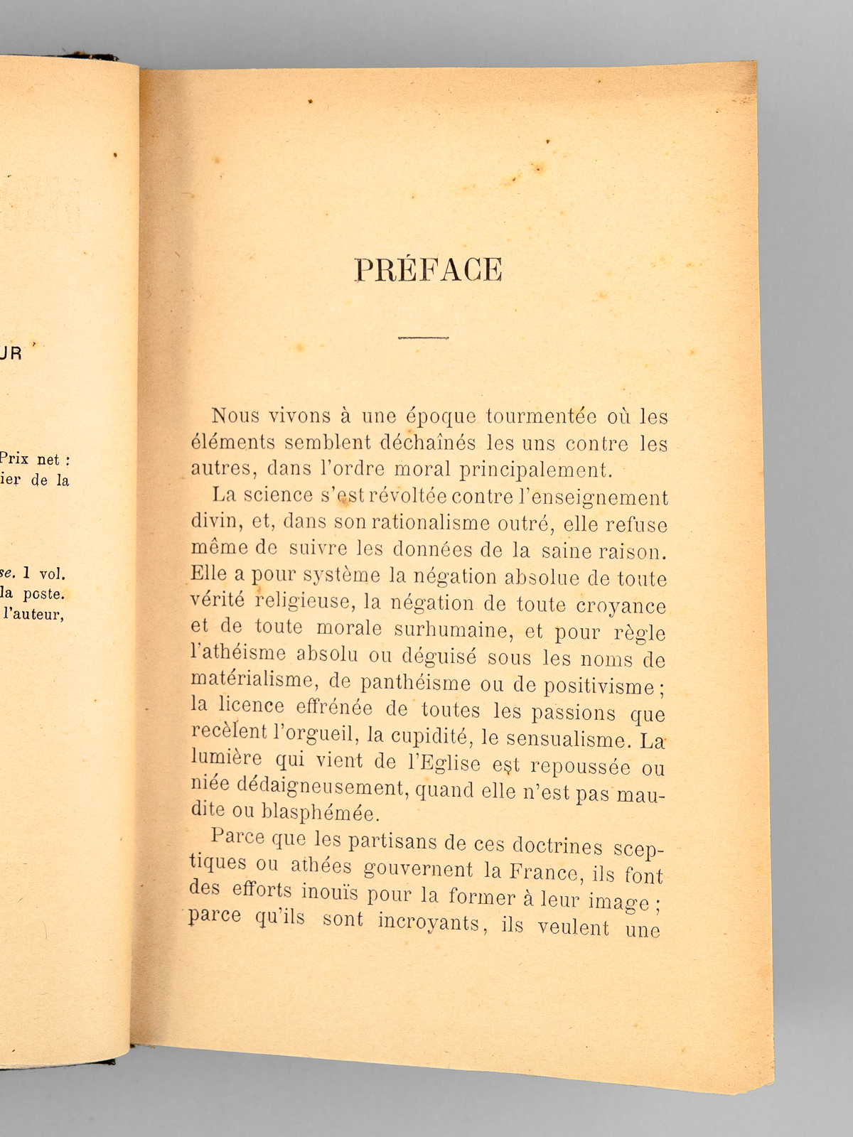 1 vol. in-12 reliure amateur demi-toile noir, Librairie Catholique Internationale de l'Oeuvre de Saint-Paul, Paris, 1893, 375 pp. et Librairie Catholique Louis Bellet, Clermont-Ferrand, 1900, 303 pp. Commentaire : Etat satisfaisant (anc. mouill. en queue, envoi partiellement coupé). Les deux titres sont peu communs.