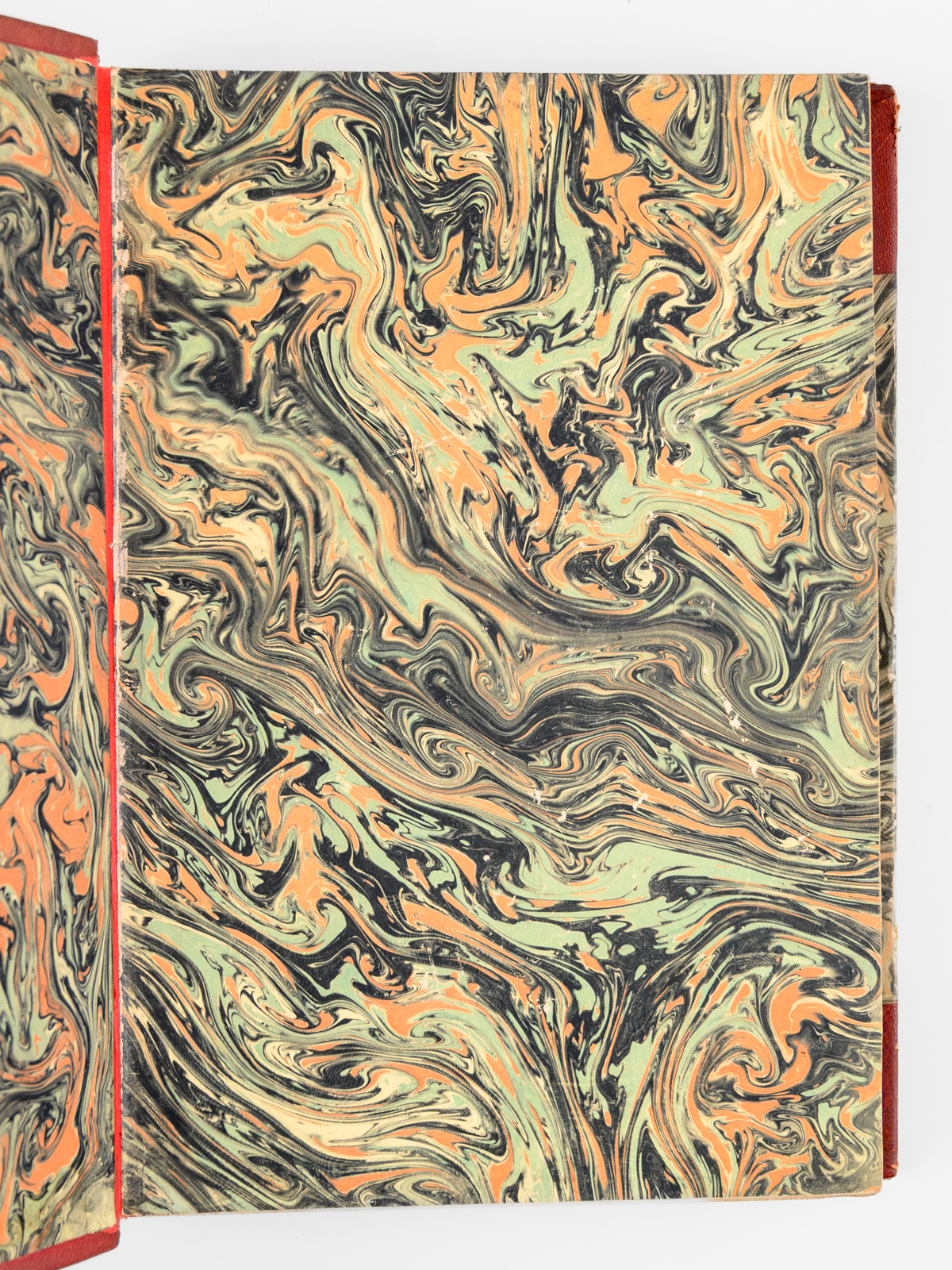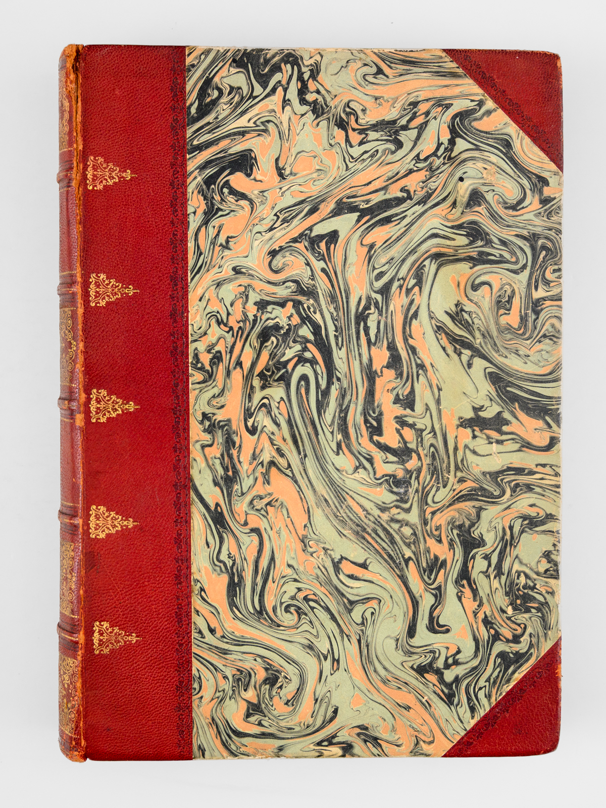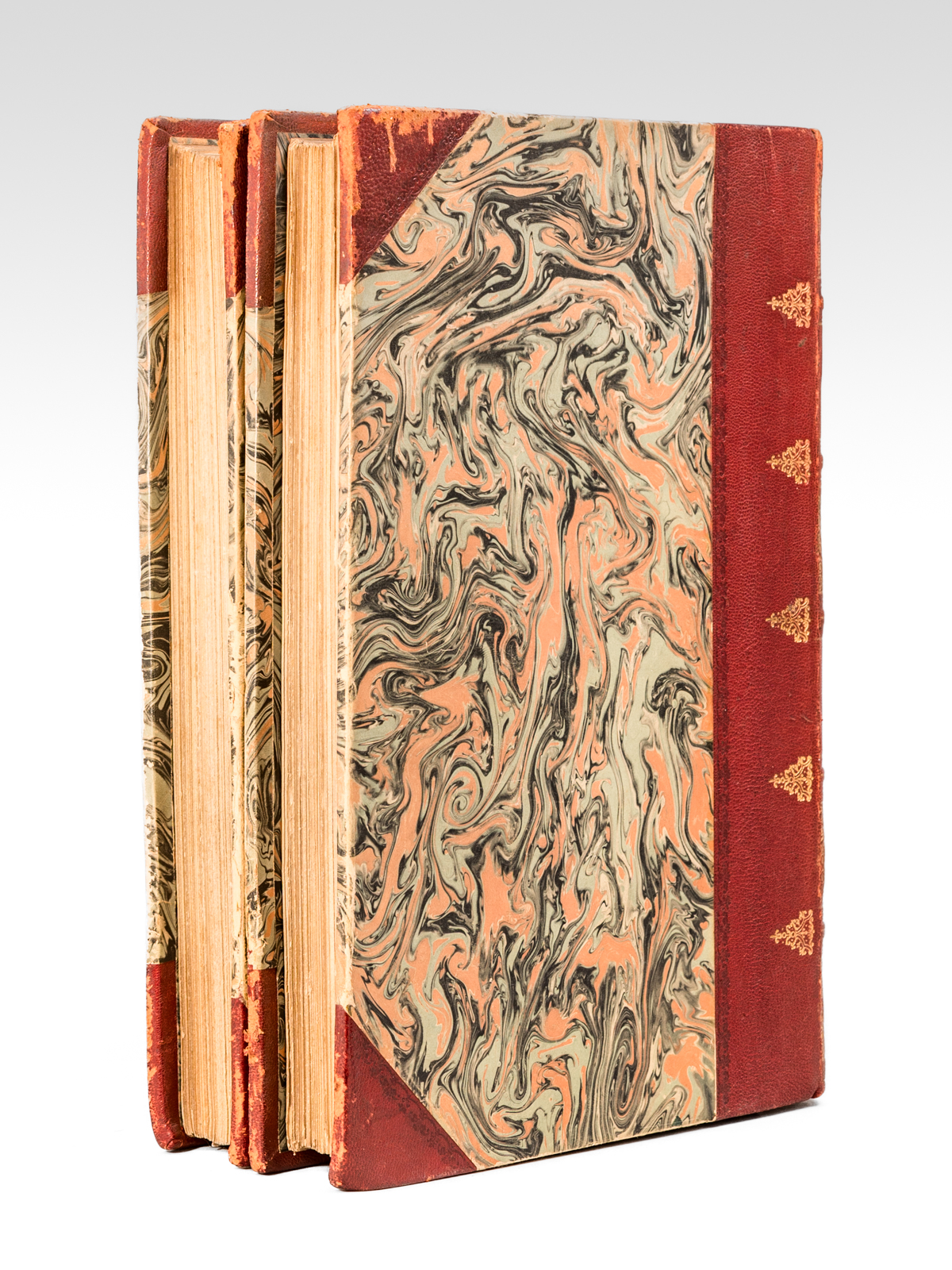 Commentaire : Magnifique édition, se proposant de rétablir les 'Heures' d'Estienne Chevalier, dont il ne restait plus que les miniatures. Elle fut tirée à 550 exemplaires et se vendait alors au prix très élevé de 360 francs (or). On trouve dans le premier tome un Office de la Vierge, l'Office de la Passion, des textes sur les 'Saints et Saintes', et un passage des 'Antiquités Judaïques' de Flavius Josèphe. Le second volume contient la liste des souscripteurs, la préface, la biographie de Jehan Foucquet (chef de l'Ecole de Tours, peintre des rois de France Charles VII et Louis XI, du pape Eugène IV, et le miniaturiste favori d'Etienne Chevalier, trésorier de France), la description de ses oeuvres, celle des miniatures reproduites dans le premier tome, une notice sur ses oeuvres présumées, l'opinion de la presse sur l'ouvrage, une description des ornements accompagnant le texte et 4 tables (2 au début et 2 à la fin de l'ouvrage). Bon état (reliure un peu frottée avec qq. usures en mors, coupes frottées, très bon état intérieur). Vicaire, III, 766