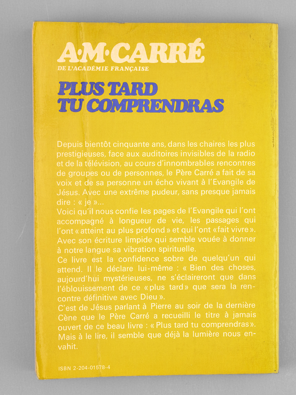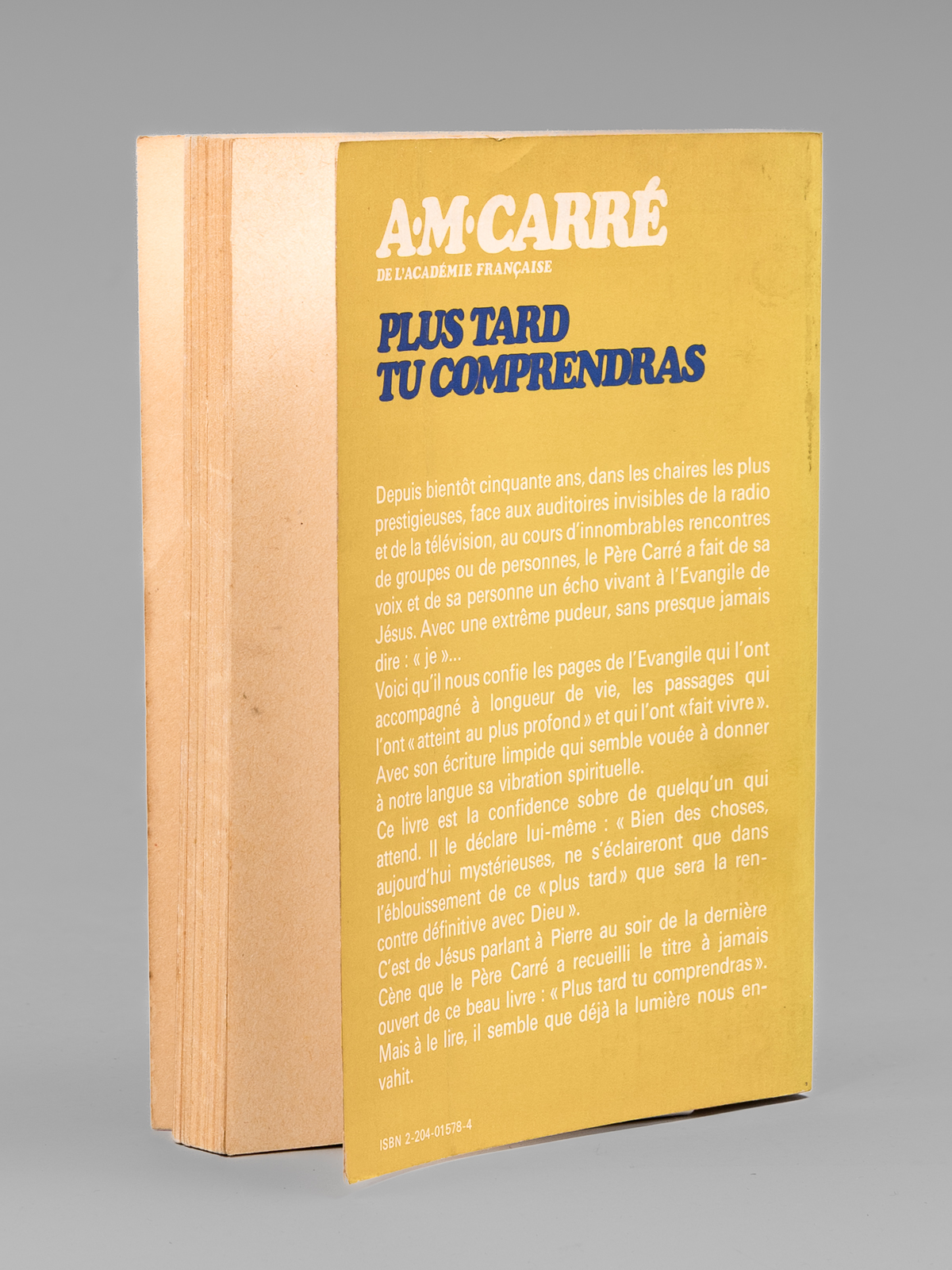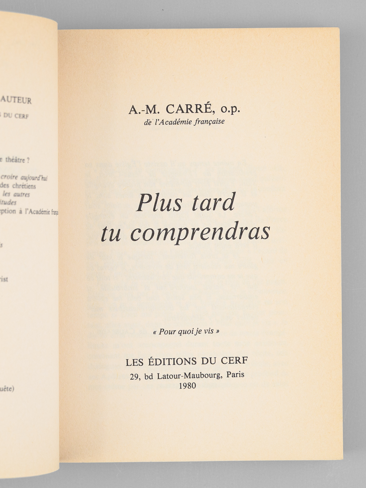 Plus tard tu comprendras [ Livre signé par l'auteur - Envoi à Maurice Druon ] - Auteur: Carré, A.-M. [ Carré, Père Ambroise-Marie (1908-2004) ] - Année d'édition: 1980