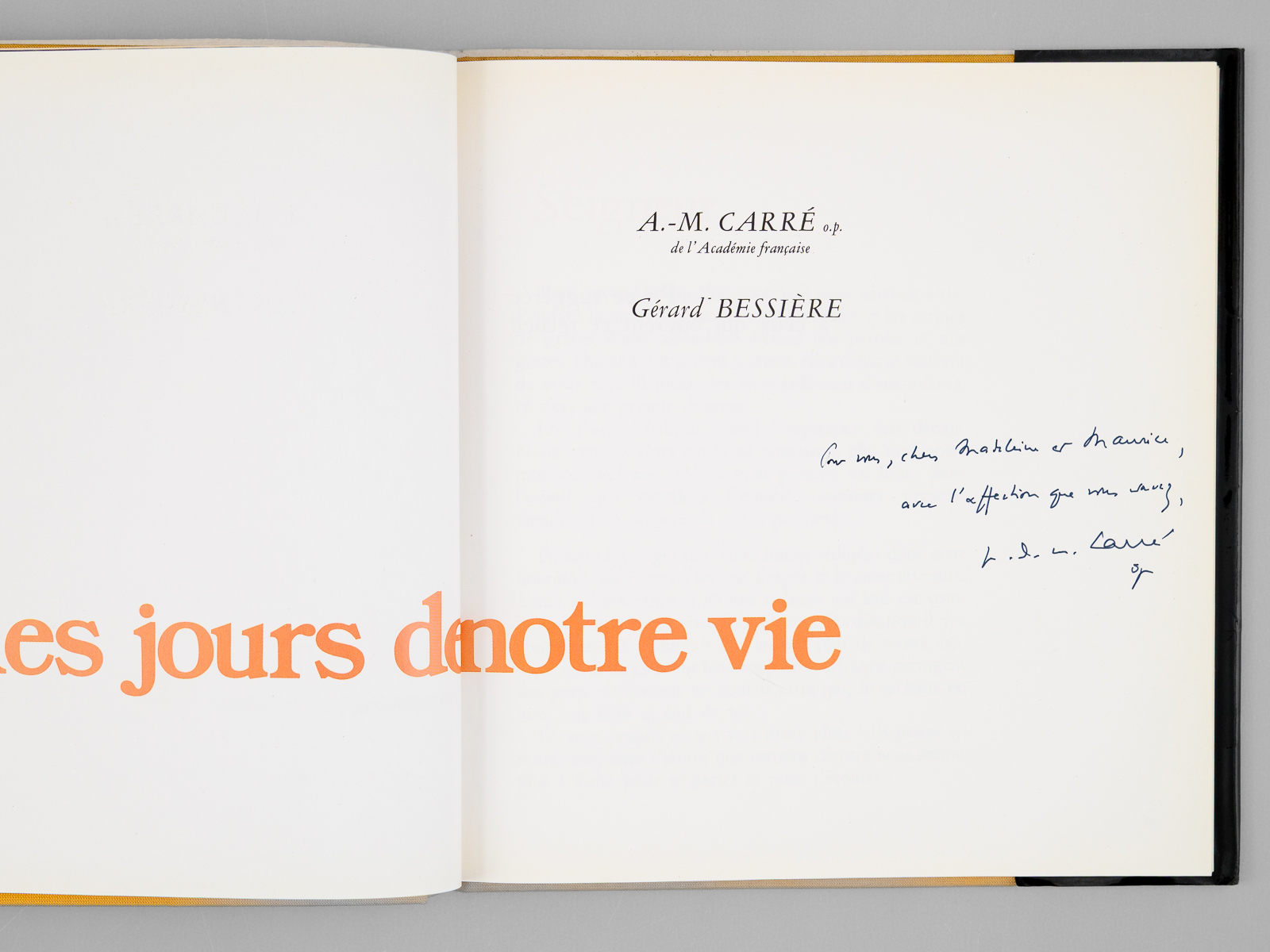 Prières pour les jours de notre vie [ Livre signé par l'auteur - Envoi à Maurice Druon ] - Auteur: Carré, Père A.-M. [ Carré, Père Ambroise-Marie (1908-2004) ] ; BESSIERES, Gérard - Année d'édition: 1983