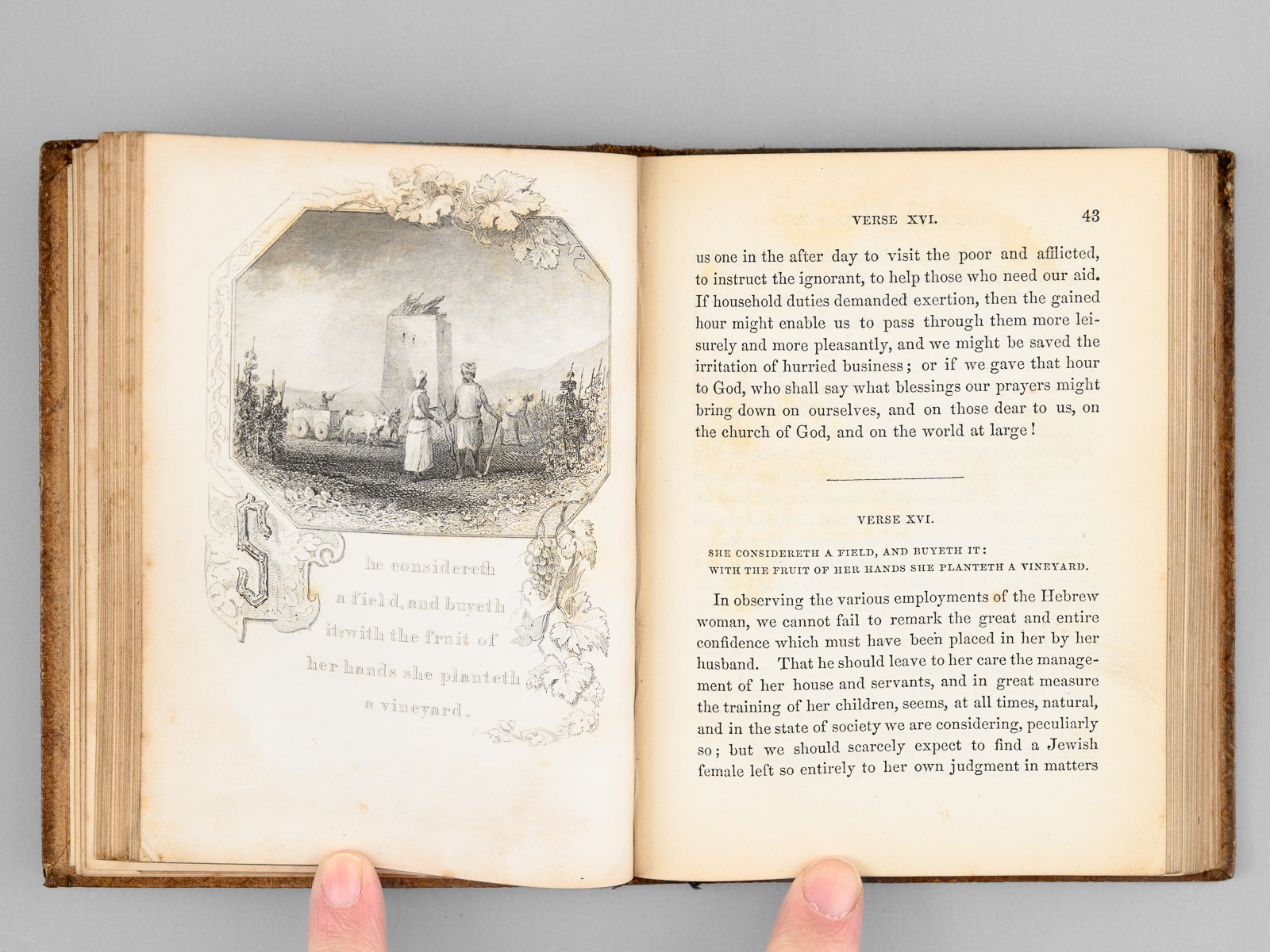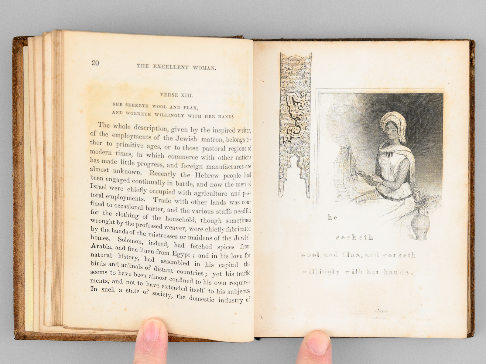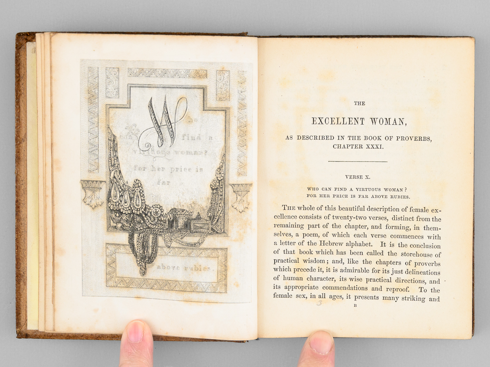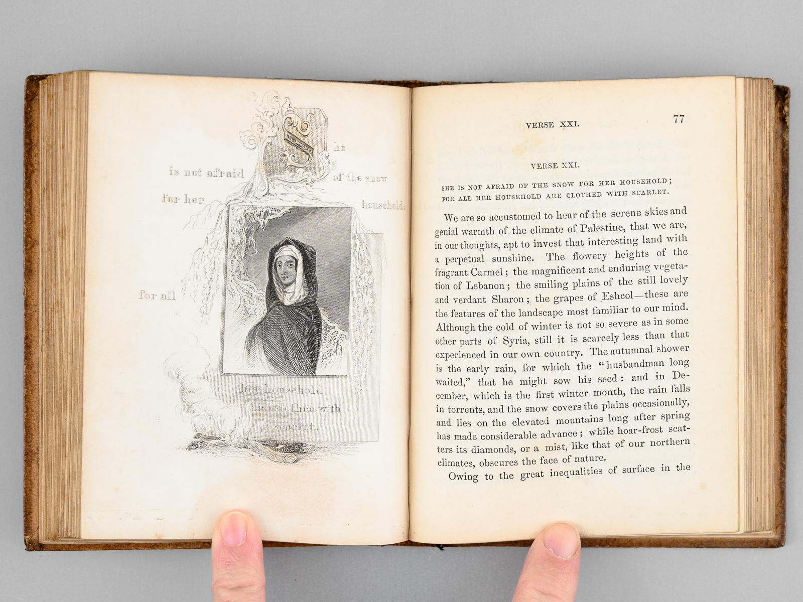 1 vol. in-12 reliure de l'époque plein maroquin blond, dos à 5 nerfs richement orné, toutes tranches dorées, Religious Tract Society, 56 Paternoster Row, s.d. [ circa 1840 ], 1 f. (titre gravé), 158 pp. et 1 f. n. ch. avec 23 planches hors texte Commentaire : Etat très satisfaisant (reliure frottée, qq. rouss., ex-dono 'Jane White from her kind friend Mrs Shortridge oct. 1861')