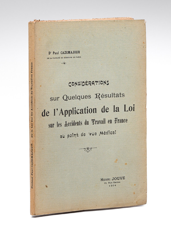 Considérations sur Quelques Résultats de l'Application de la Loi sur les Accidents du Travail en France au point de vue médical [ Edition originale - Livre dédicacé par l'auteur ] - Auteur: CAZEMAJOUR, Dr. Paul - Année d'édition: 1904