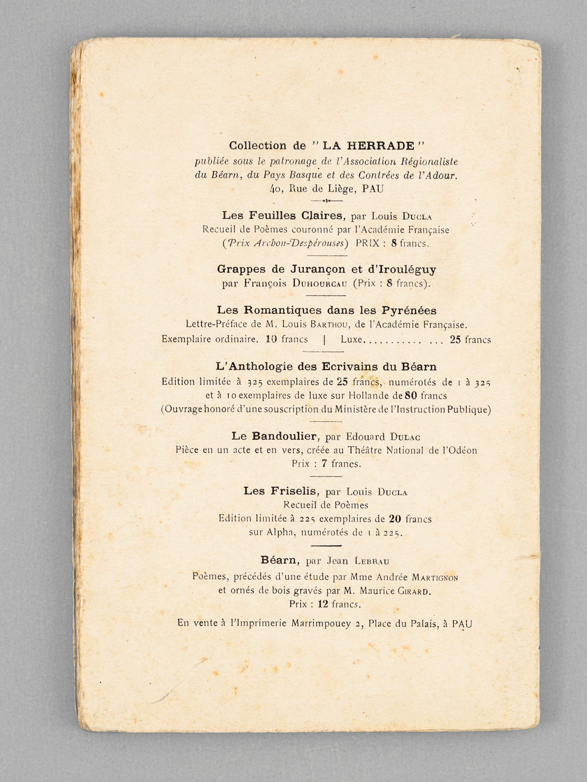 - Auteur: COLLECTIF ; NOUGARÈDE R. ; FAUCHER D. ; THIERY P. ; PONS P. ; GAUSSEN H. ; PARANT J.-V. ; LASSERRE M. ; BABONNEAU L. ; ASTRE G. ; CAUJOLLE F. ; DEGUIRAL R. ; BORDÈRES O.