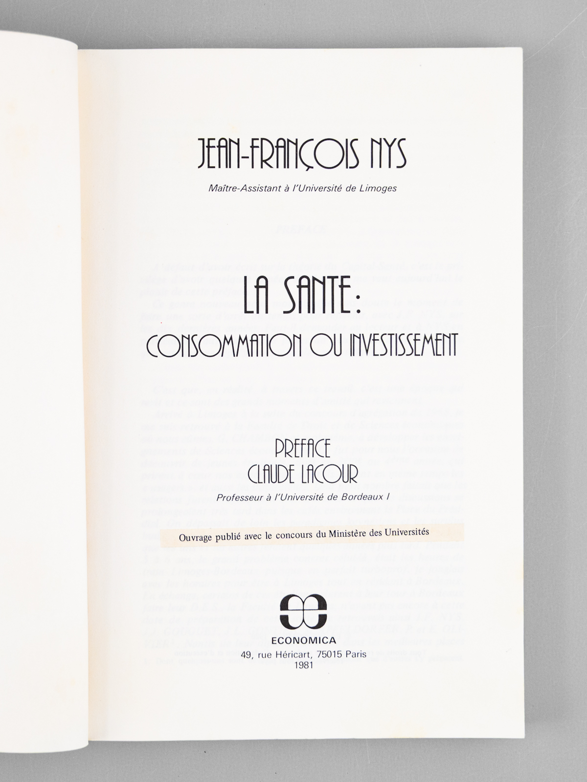 Préface de Claude Lacour, 1 vol. in-8 br., Economica, Paris, 1980, VIII-257 pp.