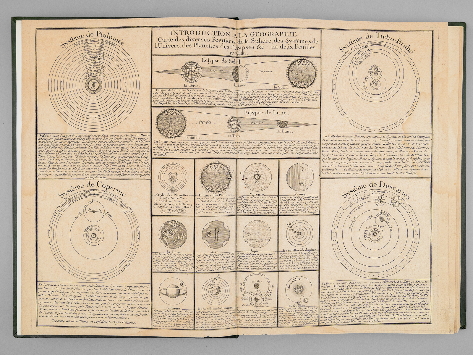 [ Recueil de 25 cartes et planches par Bourgoin : ] Introduction à la géographie. Carte des diverses positions de la Sphère, des Systèmes de l'Univers, des Planettes, des Eclypses &c. en deux feuilles, [s.l.n.d.] contient notam