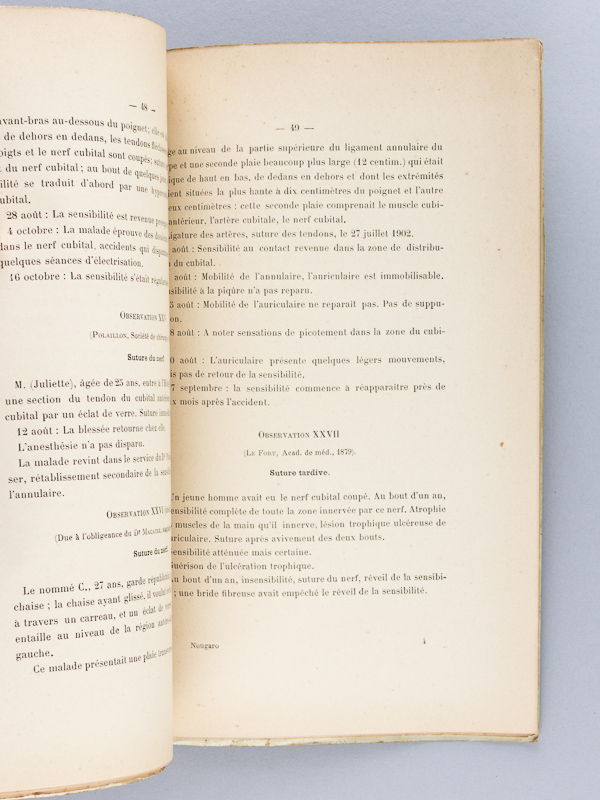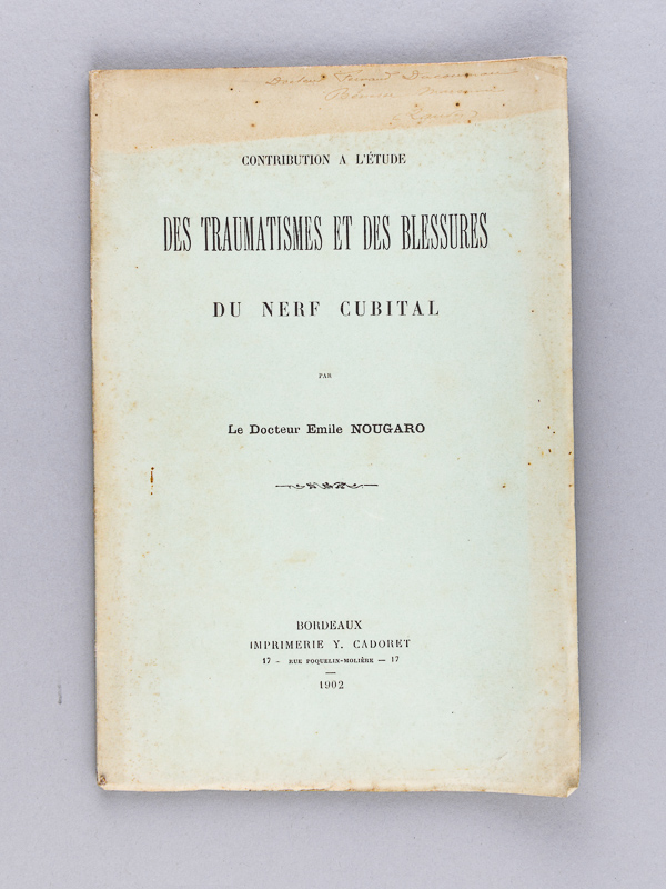 Contribution à l'Etude des Traumatismes et des Blessures du Nerf Cubital [ Edition originale - Livre dédicacé par l'auteur ] - Auteur: NOUGARO, Docteur Emile - Année d'édition: 1902