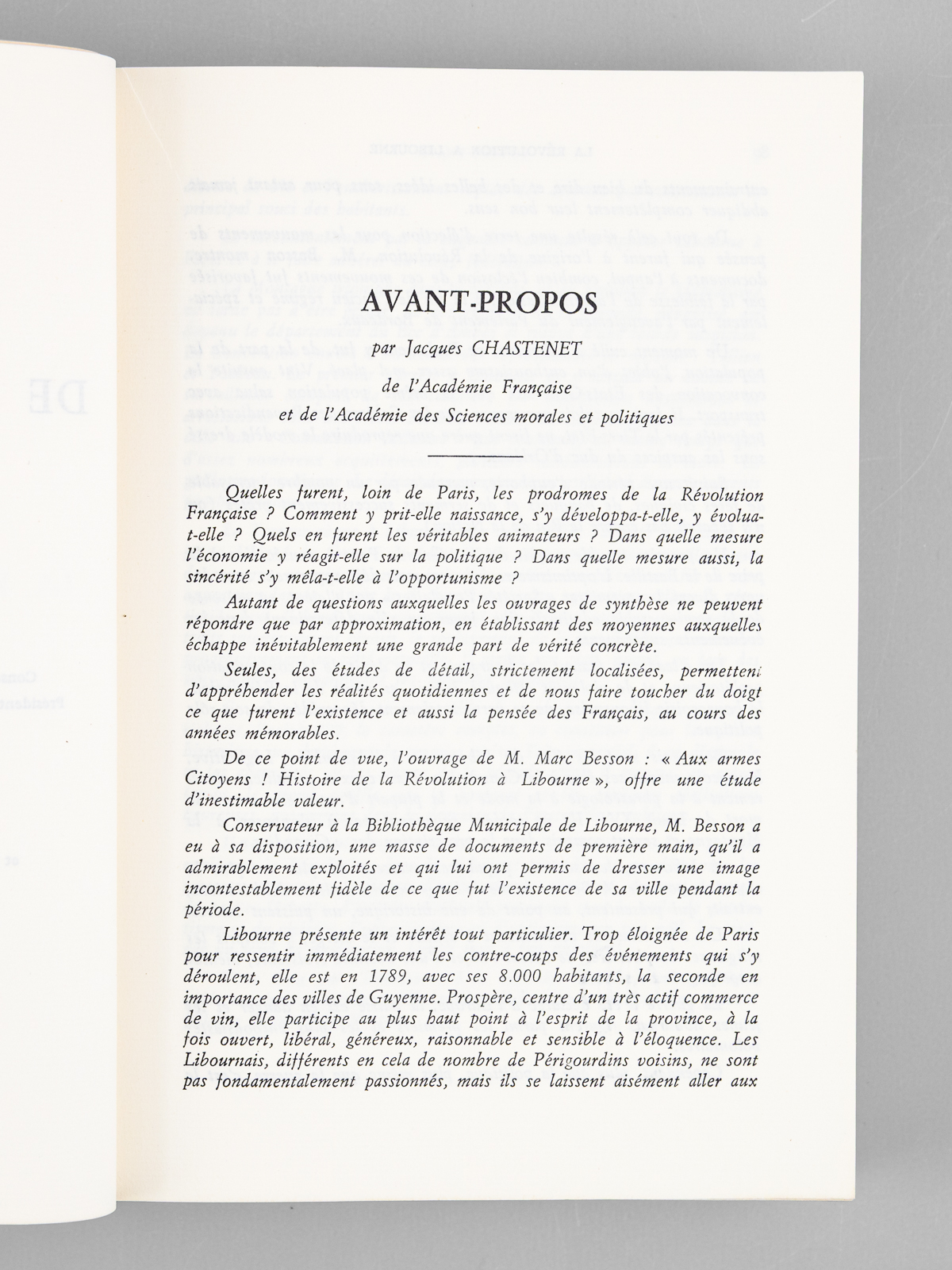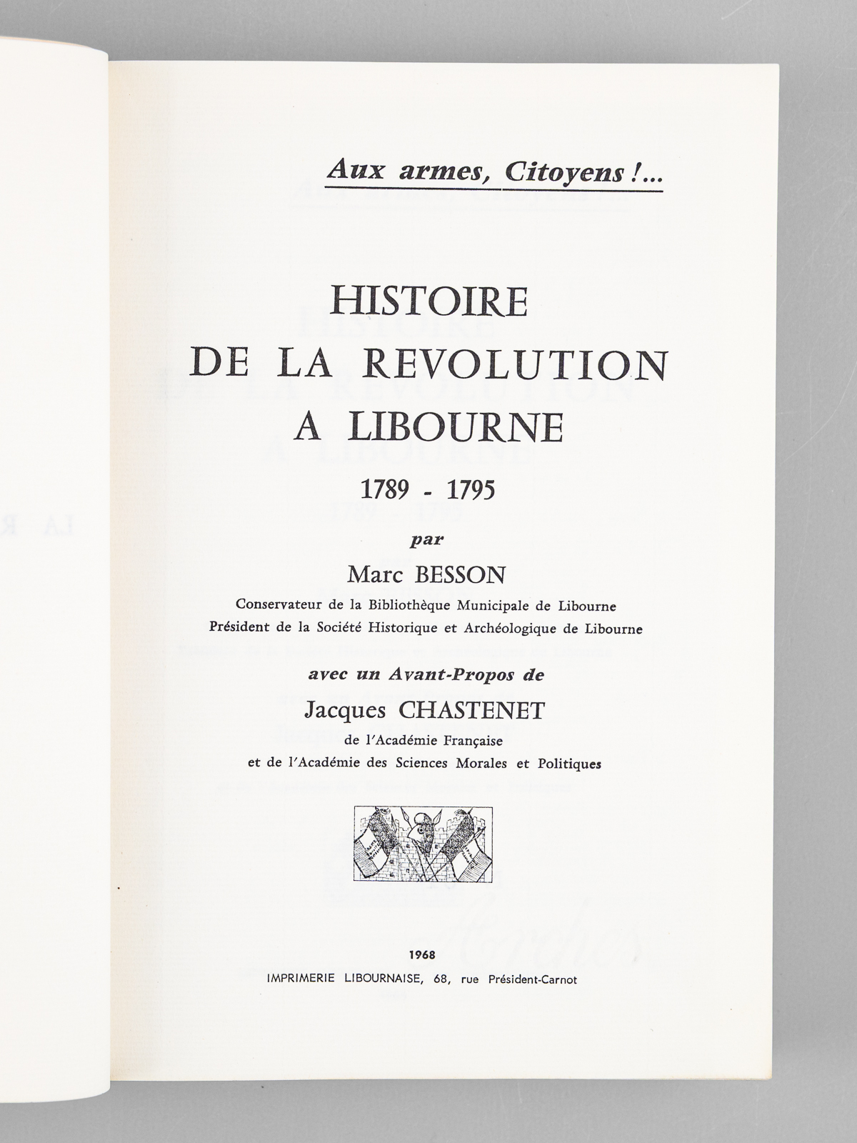 Histoire de la Révolution à Libourne 1789-1795 [ Edition originale - Exemplaire sur B.F.K. de Rives ] - Auteur: BESSON, Marc ; CHASTENET, Jacques - Année d'édition: 1968