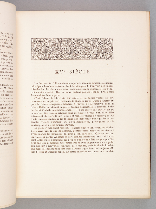 Commentaire : Rare exemplaire de ce superbe ouvrage qui recueille une iconographie très riche sur Sainte Jeanne d'Arc. Etat très satisfaisant (dos un peu frotté avec petit accroc et petit manque au dos en queue, cachet de bibliothèque du Cercle de l'Union Artistique, bon état par ailleurs).