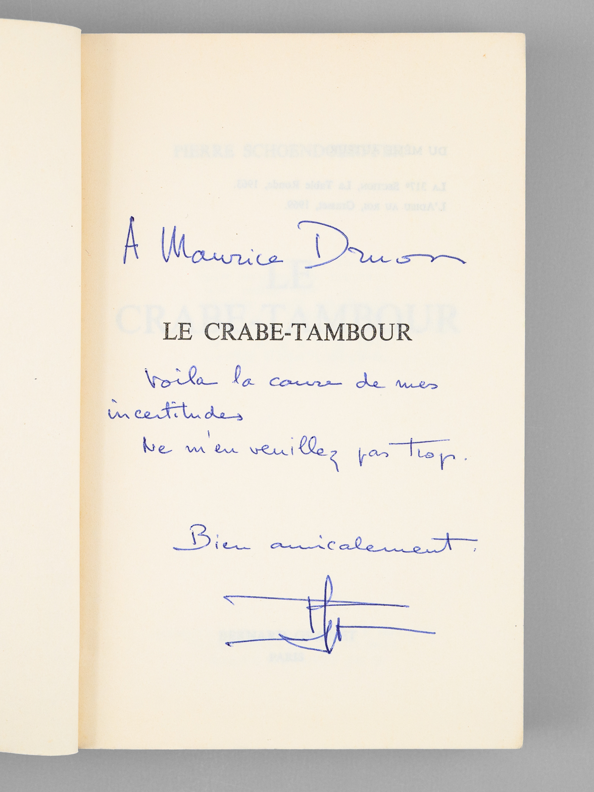 Le Crabe-Tambour [ Livre dédicacé par l'auteur à Maurice Druon ]photo n°2 : Le Crabe-Tambour [ Livre dédicacé par l'auteur à Maurice Druon ]photo n°3 : Le Crabe-Tambour [ Livre dédicacé par l'auteur à Maurice Druon ]photo n°4 : Le Crabe-Tambour [ Livre dédicacé par l'auteur à Maurice Druon ]photo n°5 : Le Crabe-Tambour [ Livre dédicacé par l'auteur à Maurice Druon ]photo n°6 : Le Crabe-Tambour [ Livre dédicacé par l'auteur à Maurice Druon ]photo n°7 : Le Crabe-Tambour [ Livre dédicacé par l'auteur à Maurice Druon ]photo n°8 : Le Crabe-Tambour [ Livre dédicacé par l'auteur à Maurice Druon ]