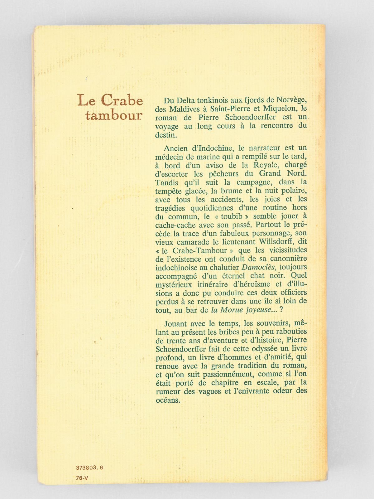 Commentaire : Bel envoi de Pierre Schoendoerffer 'A Maurice Druon, voilà la cause de mes incertitudes, ne m'en veuillez pas trop'. Comme à son habitude, Maurice Druon a plié l'angle de 6 feuillets qui avaient plus particulièrement retenu son attention (avec une marque au stylo en marge d'un feuillet). Bon état (couv. très lég. frottée)