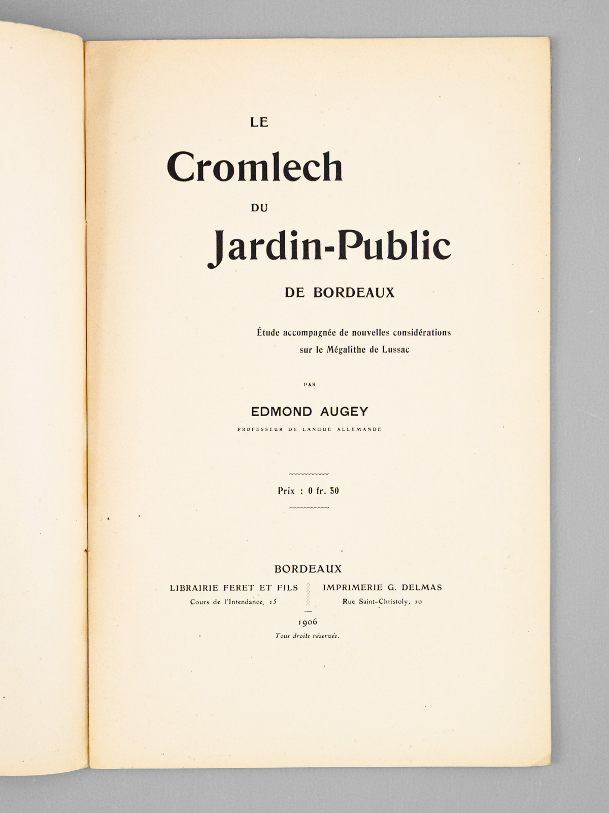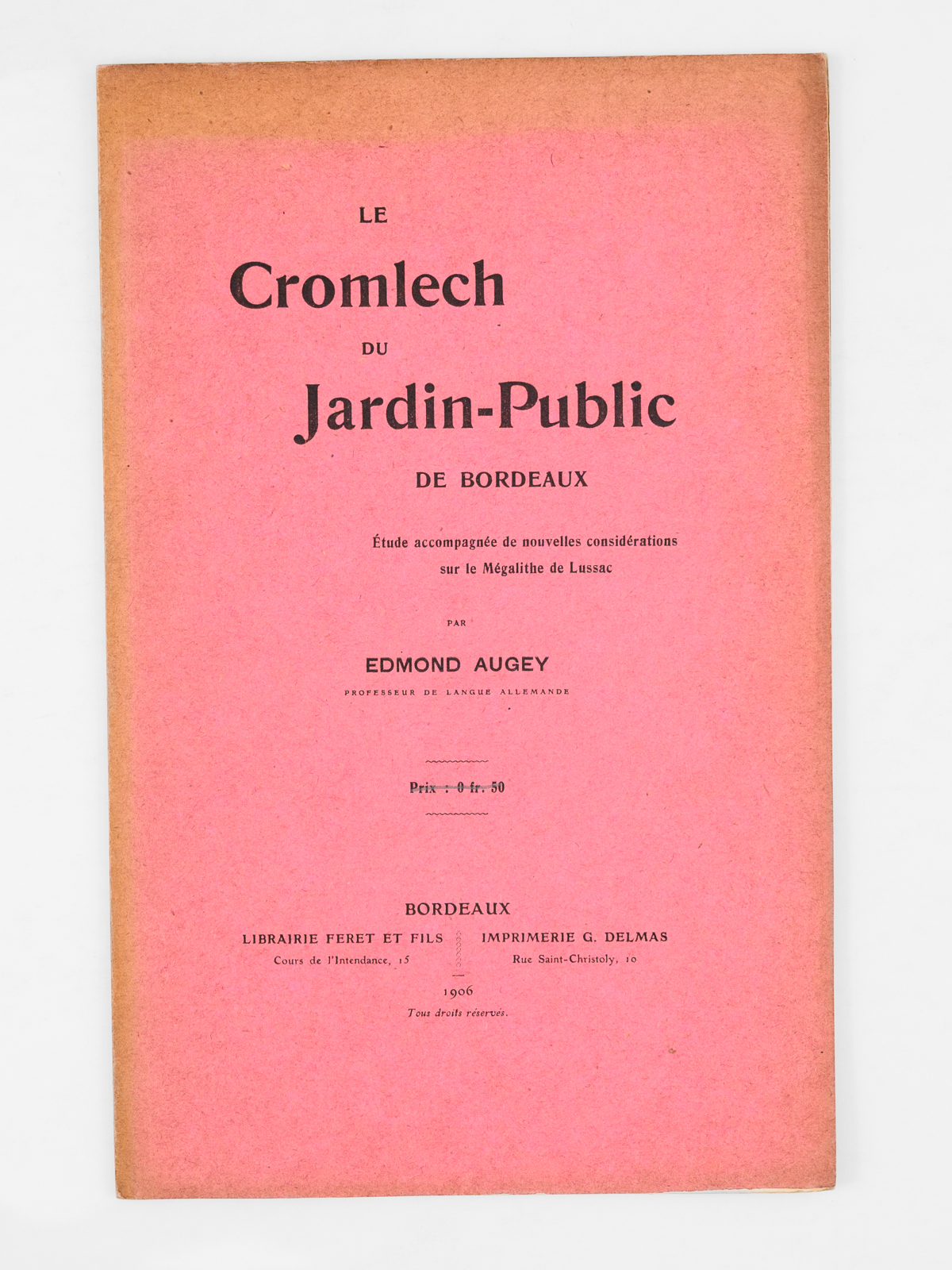 1 brochure in-8, Librairie Féret et Fils, Imprimerie G. Delmas, Bordeaux, 1906, 26 pp.