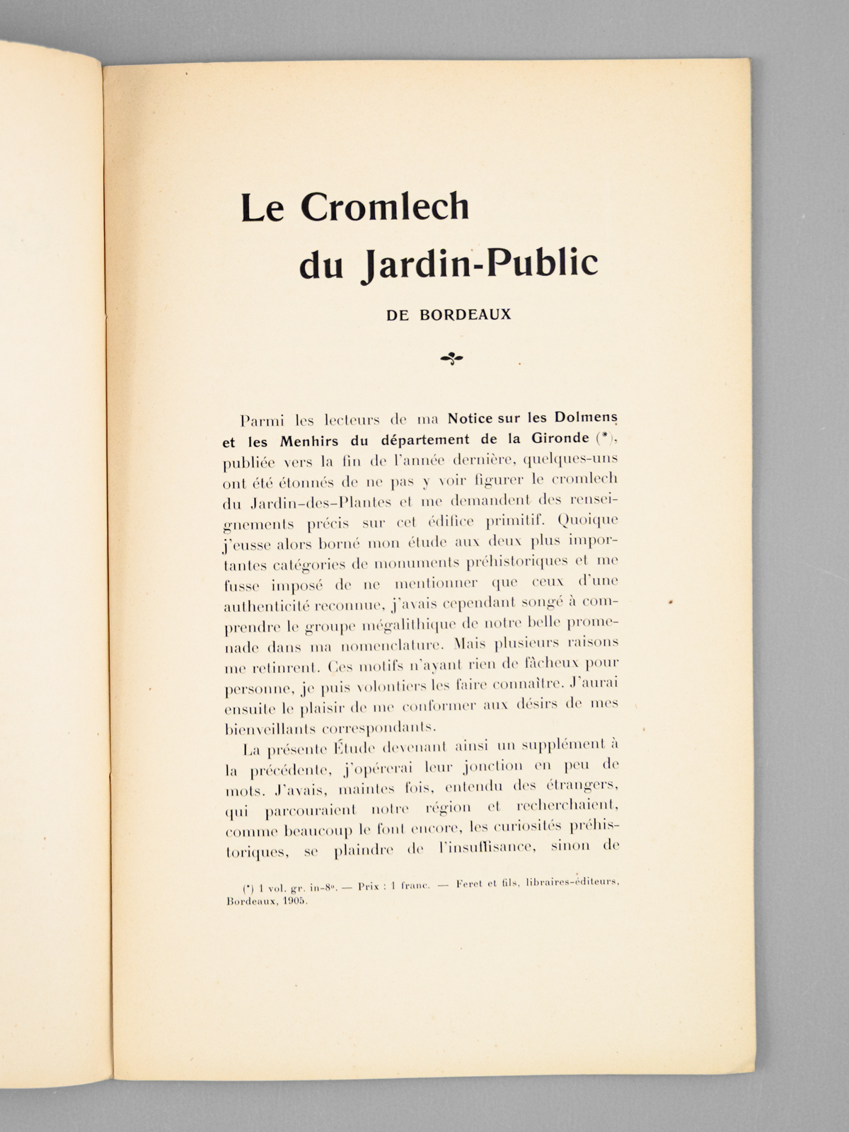 Le Cromlech du Jardin-Public de Bordeaux. Etude accompagnée de nouvelles considérations sur le Mégalithe de Lussac.