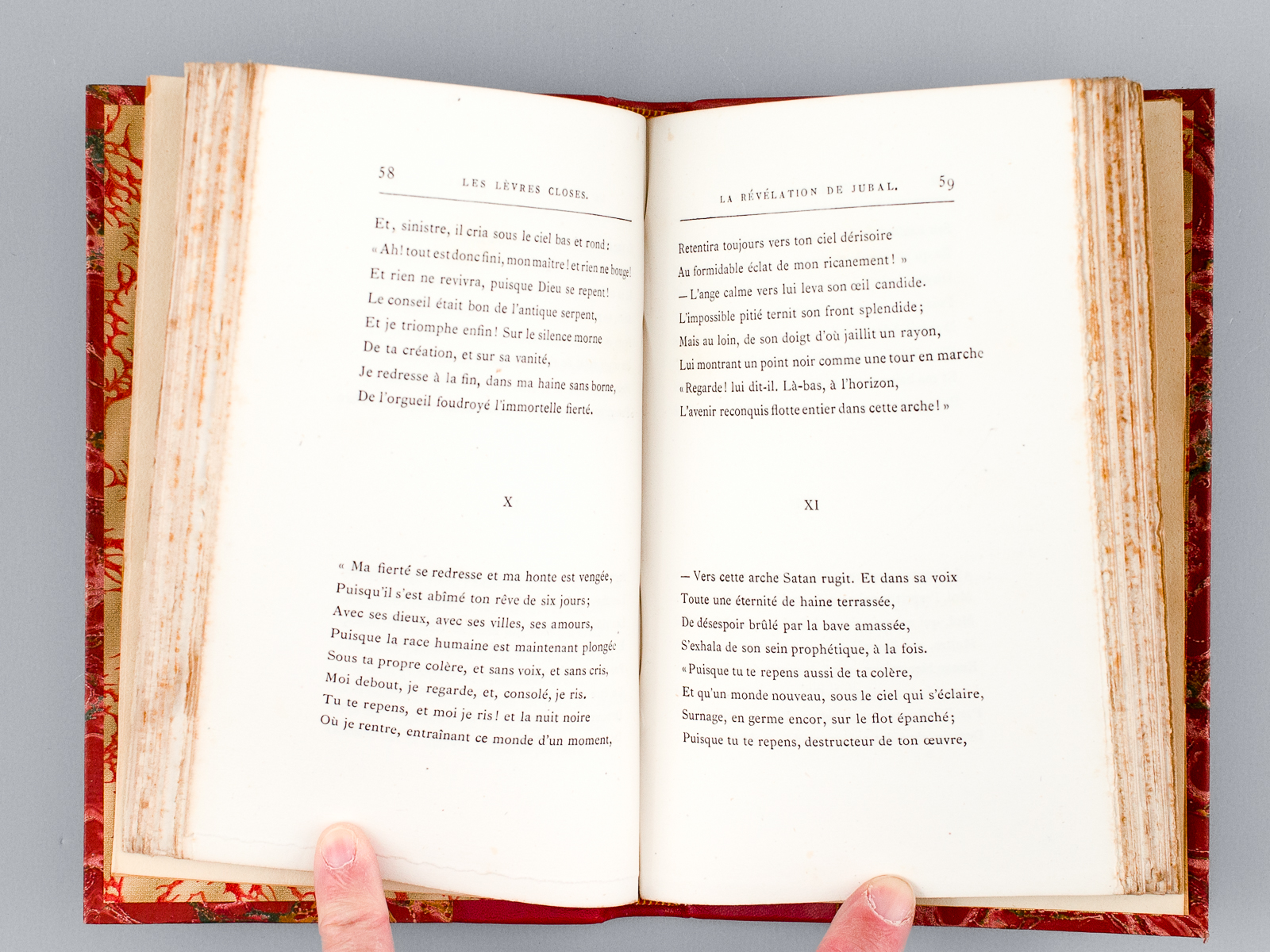 1 vol. in-12 reliure postérieure demi-basane rouge, dos à 5 nerfs, couvertures conservées, Alphonse Lemerre, Paris, 1867, 2 ff., 158 pp. Commentaire : Né à Saint-Denis de La Réunion, le poète parnassien Léon Dierx (1838-1912) est ainsi loué par Verlaine : 'Mais où l'admiration se vit forcée parmi les compétents, ce fut à l'apparition des Lèvres closes, puis des Amants'... Bon état (qq. rouss., très bon état par ailleurs, ex-libris en garde). Vicaire, III, 263