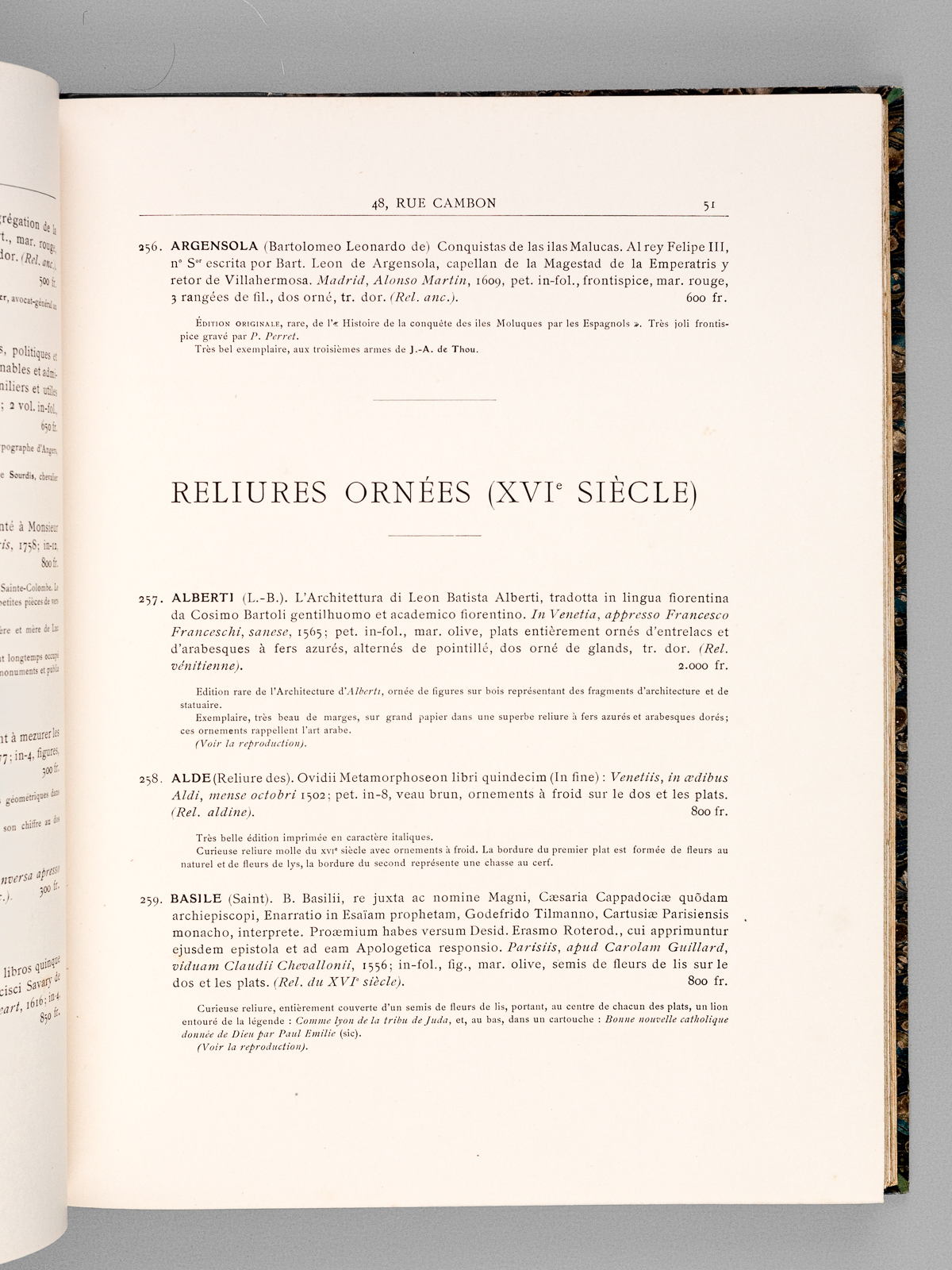 1 vol. grand in-4 reliure demi-chagrin vert, dos à 5 nerfs, couvertures conservées, Librairie Théophile Belin, Paris, 1912, 61 pp. (311 numéros et 86 planches hors texte) Commentaire : Belle reliure pour ce beau catalogue. Bon exemplaire (infimes frott., rares rouss., bel exemplaire par ailleurs).
