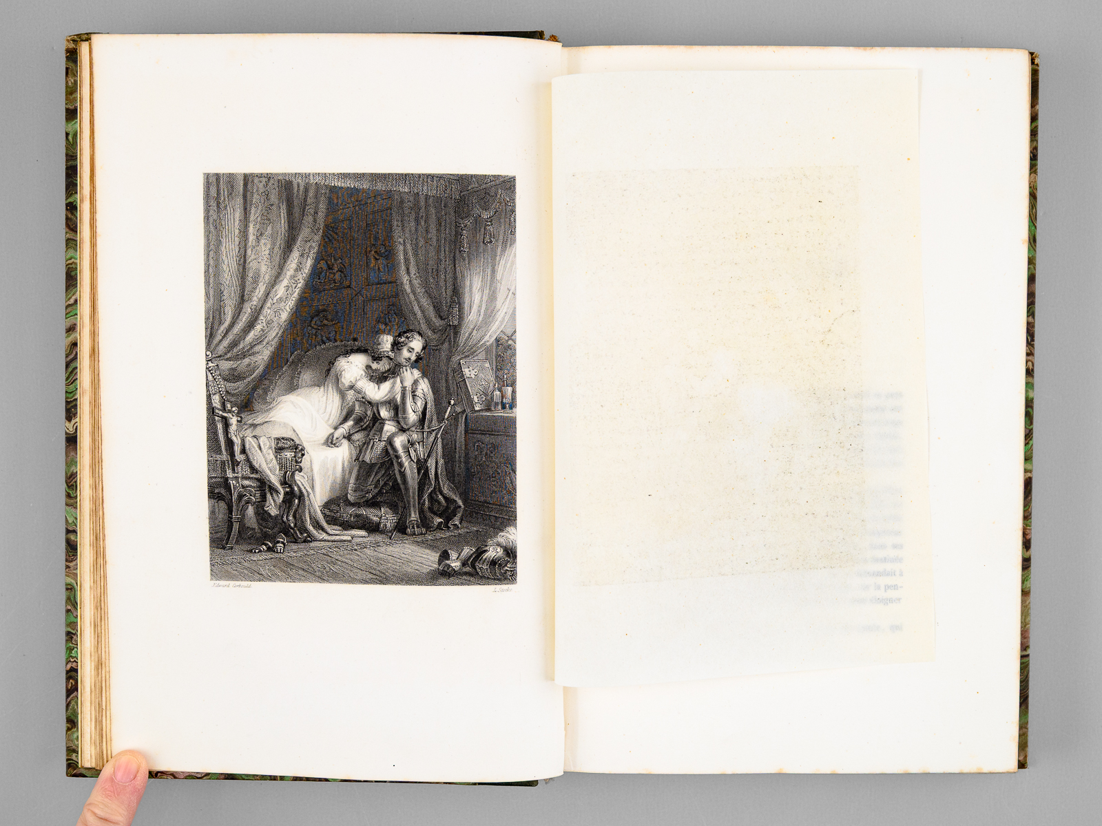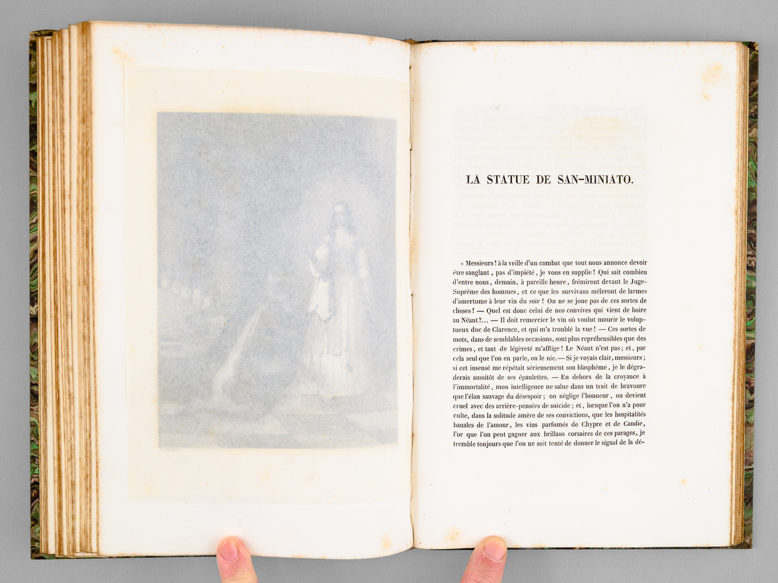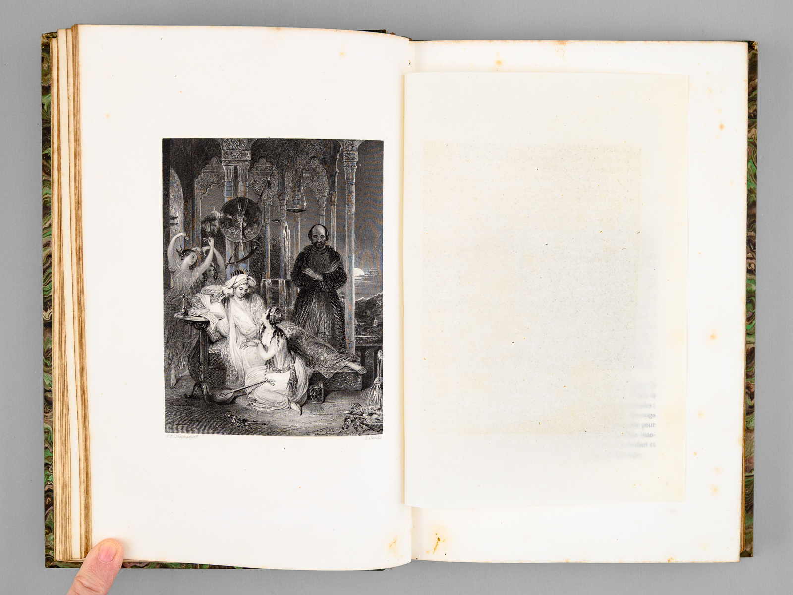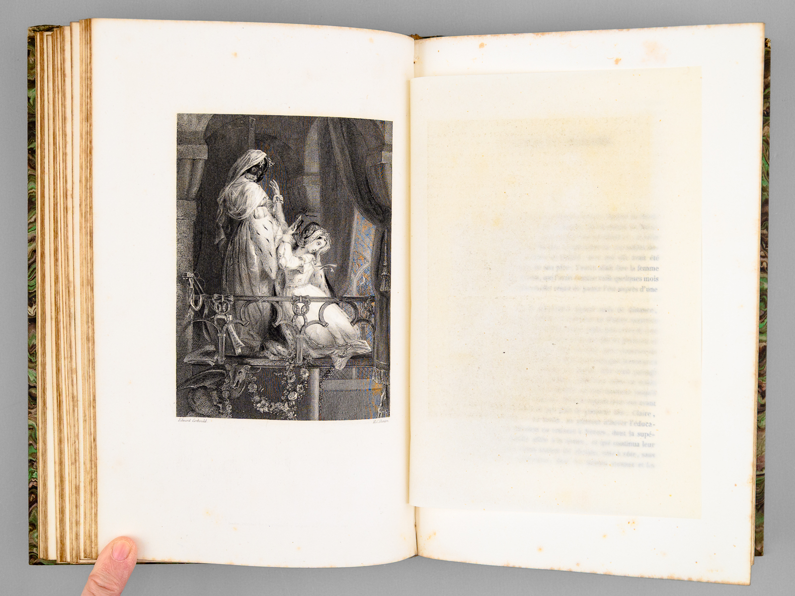 1 vol. in-8 reliure de l'époque demi-chagrin vert, dos lisse orné en long, toutes tranches dorées, triple filet doré en mors, reliure signée de Boutigny, H.-L. Delloye, Paris, s.d. [ 1841 ], 2 ff., 236 pp. avec 26 planches hors texte (y compris le titre gravé) Commentaire : Charmant keepsake relié par Boutigny. Actif de 1830 à 1865, Boutigny fut notamment le relieur habituel d'Honoré de Balzac, et contribua au succès des belles reliures de keepsake. Bon état (petites usures en coins, coiffe sup. très lég. frottée, bon exemplaire par ailleurs). Fléty, 32 ; Lachèvre, 105