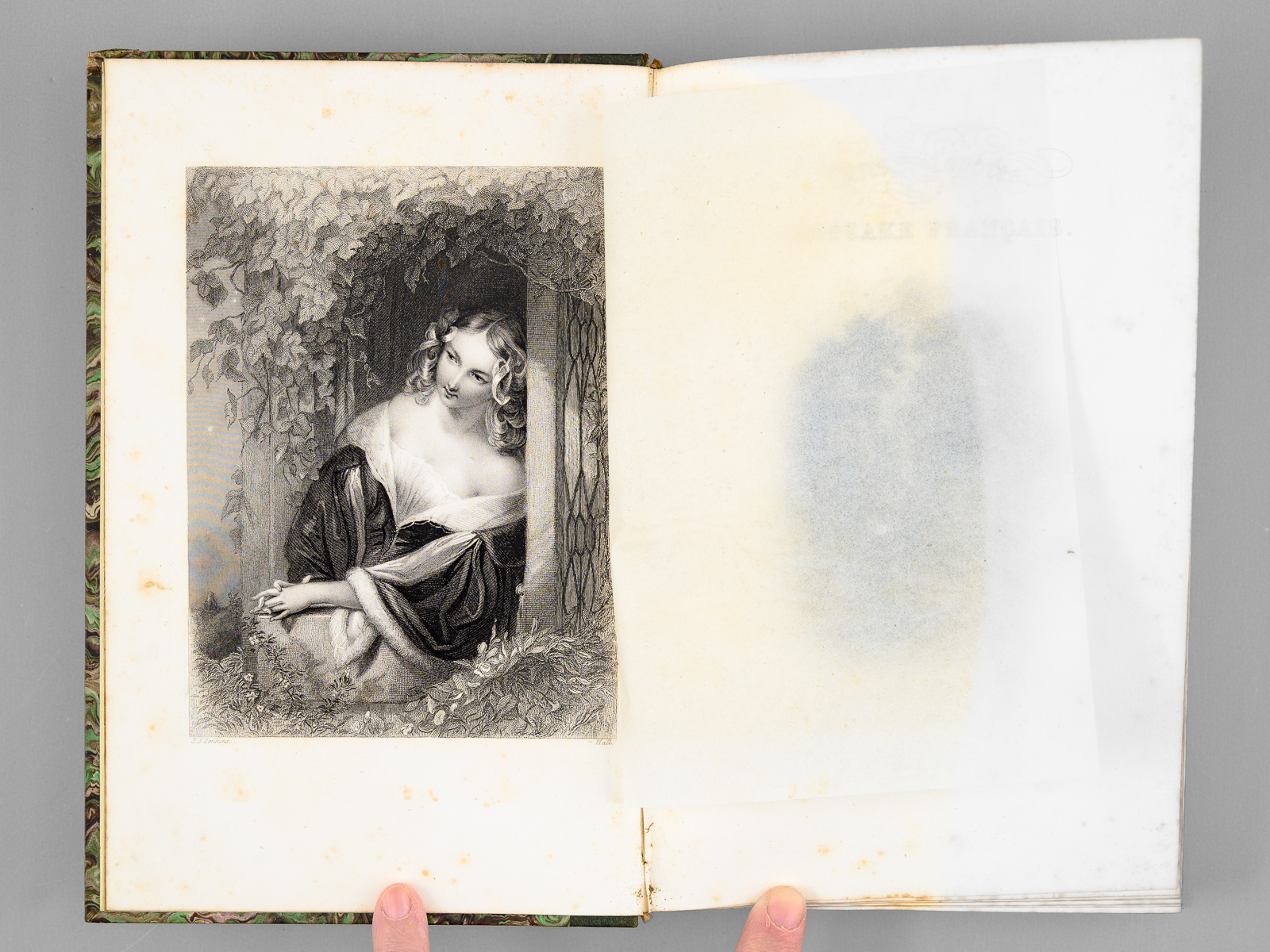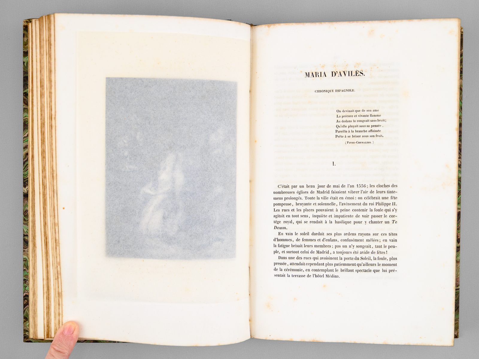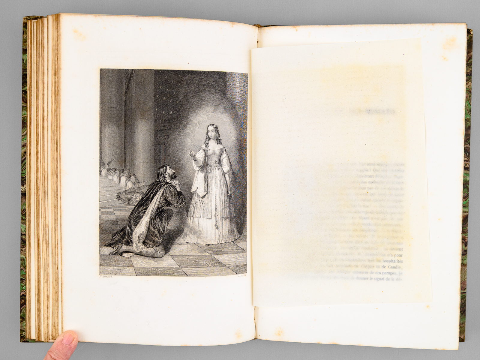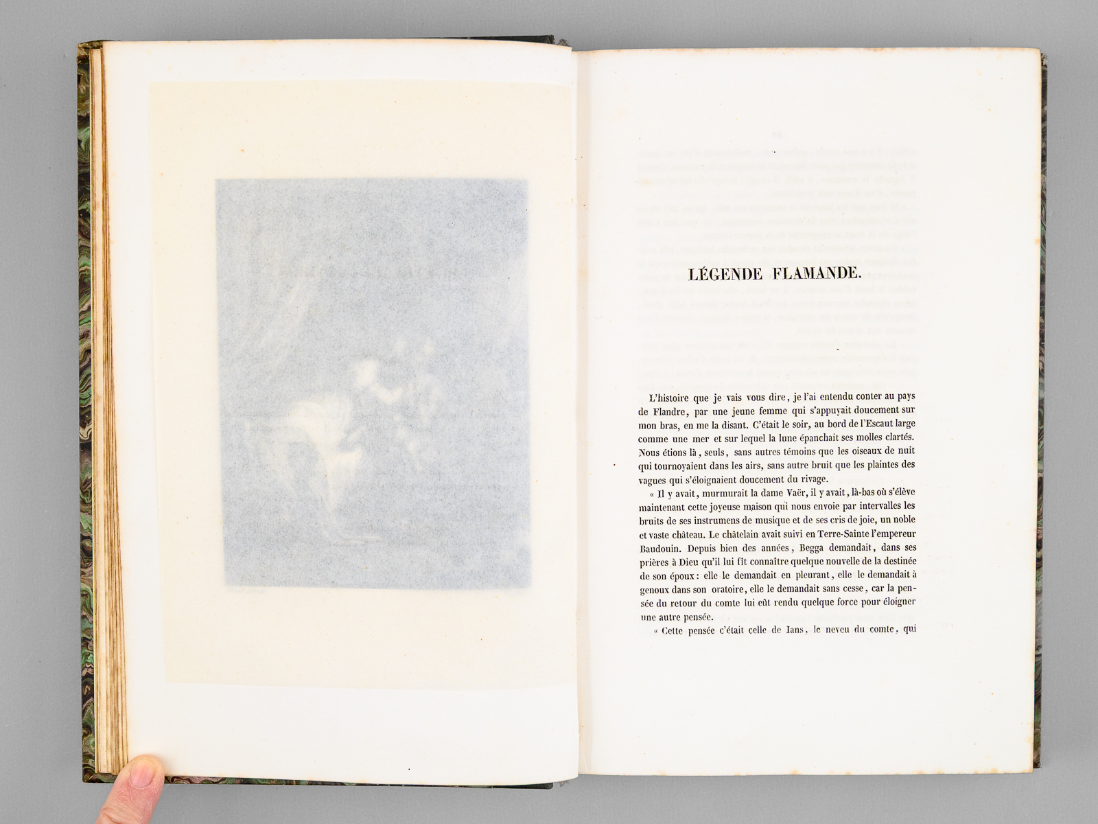 1 vol. in-8 reliure de l'époque demi-chagrin vert, dos lisse orné en long, toutes tranches dorées, triple filet doré en mors, reliure signée de Boutigny, H.-L. Delloye, Paris, s.d. [ 1841 ], 2 ff., 236 pp. avec 26 planches hors texte (y compris le titre gravé) Commentaire : Charmant keepsake relié par Boutigny. Actif de 1830 à 1865, Boutigny fut notamment le relieur habituel d'Honoré de Balzac, et contribua au succès des belles reliures de keepsake. Bon état (petites usures en coins, coiffe sup. très lég. frottée, bon exemplaire par ailleurs). Fléty, 32 ; Lachèvre, 105