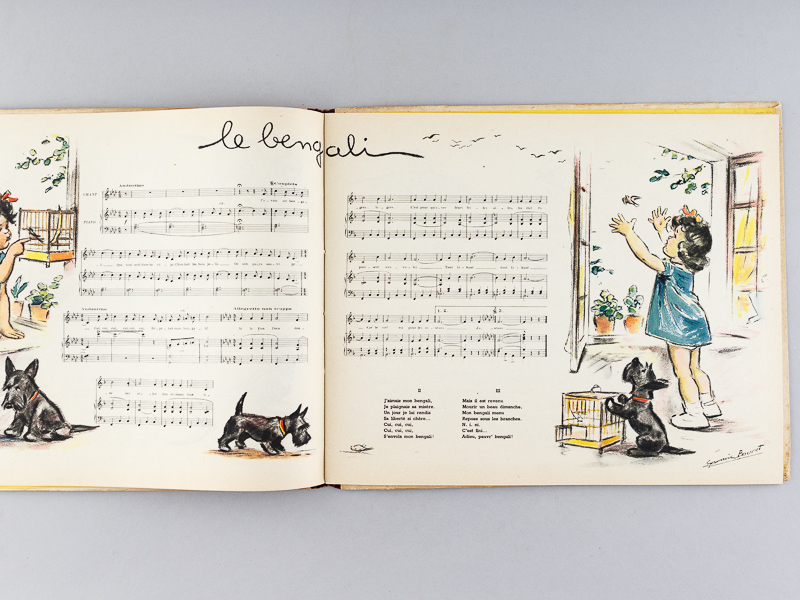 Paroles de Jacques Poterat, musique de Paul Durand, Illustrations de Germaine Bouret, 1 vol. petit in-4 oblong, cartonnage éditeur illustré, Aux Editions Arc-en-Ciel, Paris, 1945 Commentaire : Etat très satisfaisant (cartonnage un peu frotté, bon état par ailleurs)