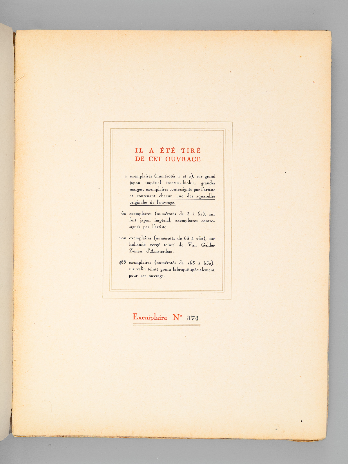 Illustrations de Gerda Wegener, Un des 488 exemplaires numérotés de 163 à 650 sur vélin teinté grenu fabriqué spécialement pour cet ouvrage (n° 374), 1 vol. in-4 br. sous couverture rempliée, L'Edition Française Illustrée, Paris, 1919