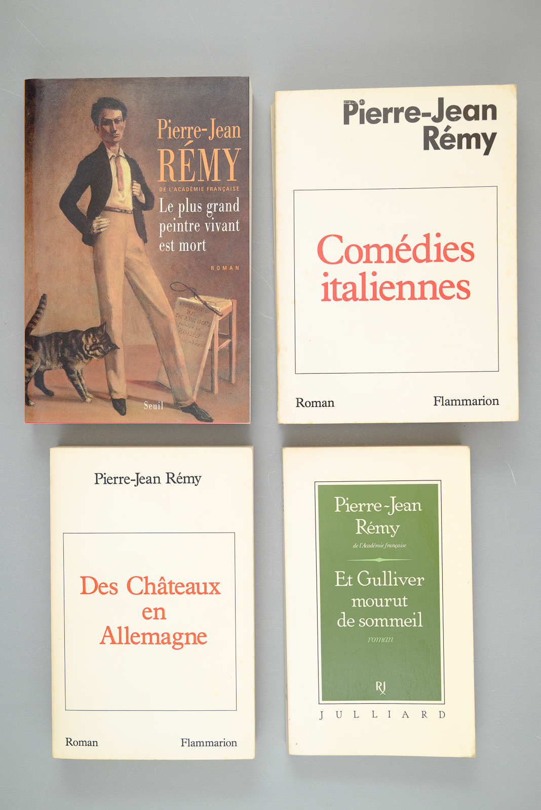 [ Lot de 4 livres dédicacés par l'auteur à Maurice Druon : ] Des Châteaux en Allemagne - Comédies italiennes - Le plus grand peintre vivant est mort - Et Gulliver mourut de sommeil - Auteur: REMY, Pierre-Jean ; [ ANGREMY, Jean-Pierre ] - Année d'édition: 1987
